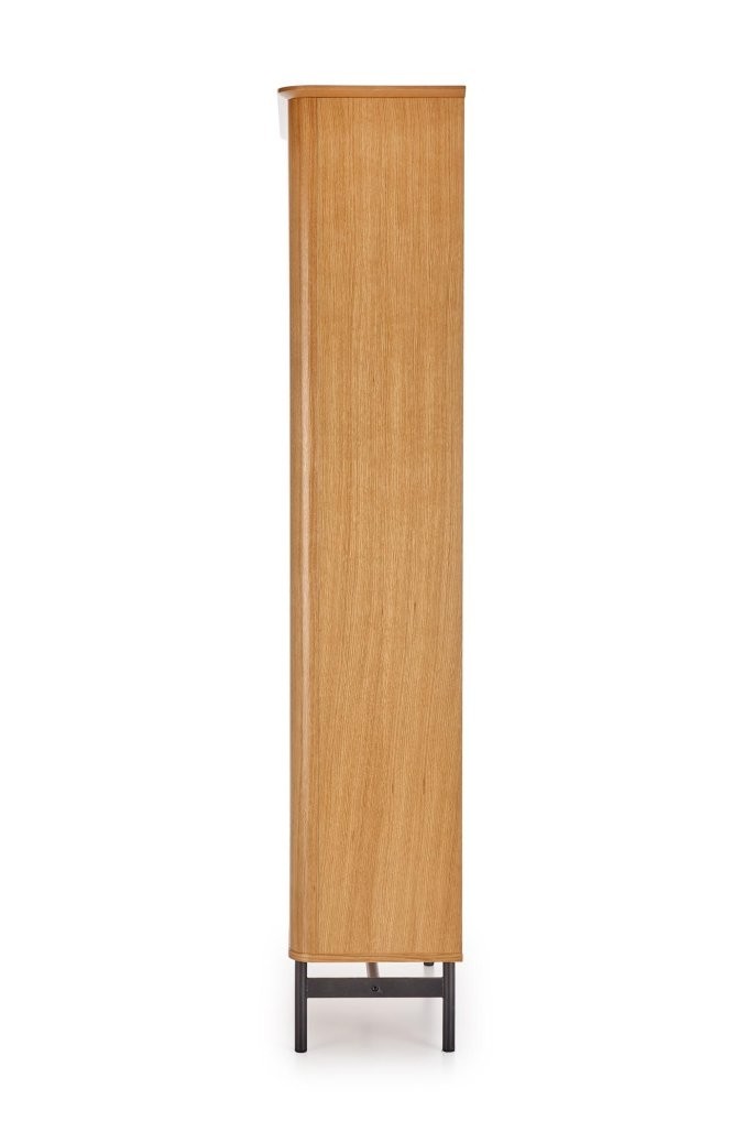 Regal Lanvek idealan je za moderne interijere. Kombinacija prirodne hrastove teksture i crnog okvira donosi toplinu i industrijski izgled, čineći ga funkcionalnim i estetskim dodatkom u svaki prostor.