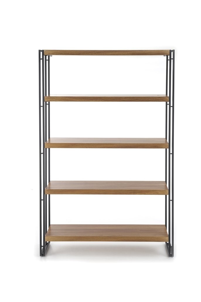 Polica Verin u stilu sa zlatnim hrastovim dekorom i metalnim okvirom idealna je za organiziranje knjiga ili ukrasnih predmeta. Donosi industrijski stil u svaki prostor.