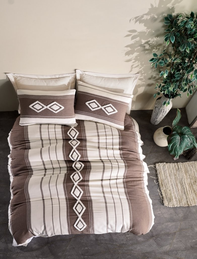 Jeste li ljubitelj minimalizma? Posteljina NERO 2 bit će pravi izbor za vas. Njene jednostavne linije i uzorak u sredini presvlake stvorit će minimalistički i moderan izgled. Komplet uključuje navlaku za poplun, plahtu i četiri jastučnice.