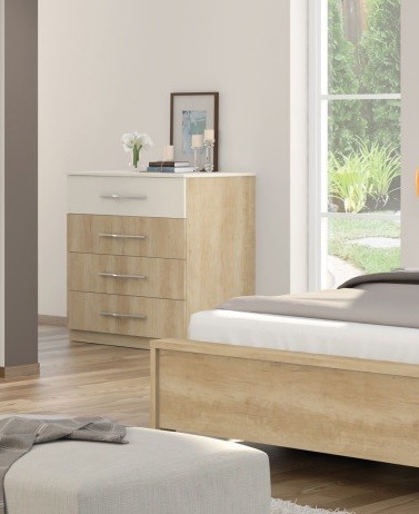 Komoda je sastavljena iz četiri ladice. Komoda ima i tiho zatvaranje. S komodom ćete uštedjeti prostor u vašoj spavaćoj sobi. Pustite, da poljepša vaš dom i spavaču sobu.