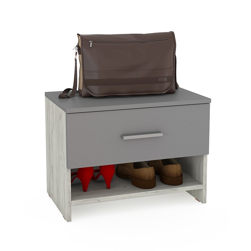 Praktična predsoba Doran je odlična za manjša stanovanja saj ne zavzame veliko prostora, hkrati je pa zelo funkcionalna in vsebuje vse kar potrebujete. Predsoba je sestavljena iz priročne odlagalne police za kape in zložljive dežnike, obešalnika za jakne in bunde, spodaj pa ima omarico za čevlje, ki lahko služi tudi kot klop.