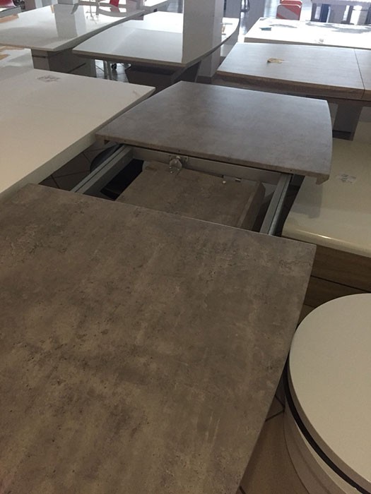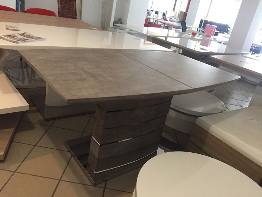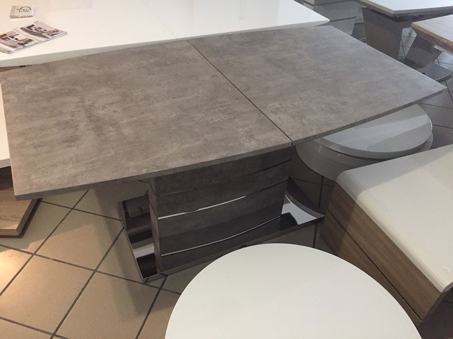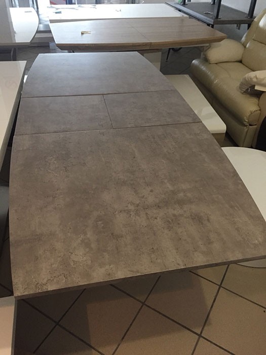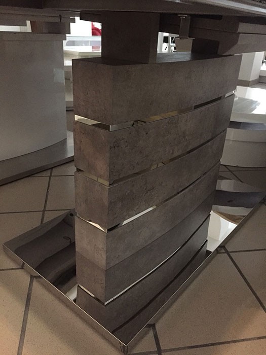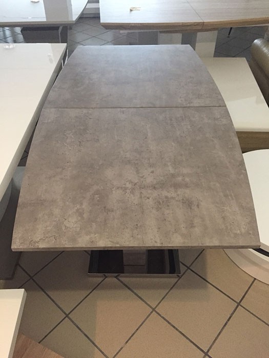 Produžni stol FORTY je produžni blagovaonski stol sa srednjim stupom. Napravljen je iz MDF materijala u boji betona. Donje postolje je iz nehrđajućeg čelika kao što su na sami nozi crte iz nehrđajućeg čelika.