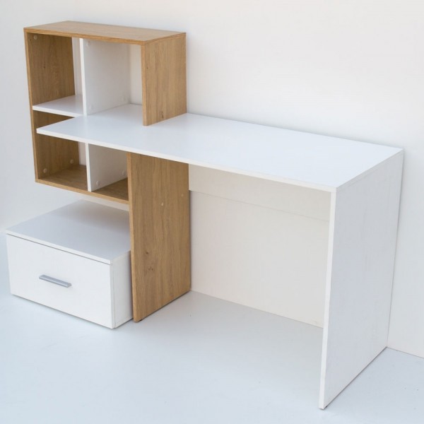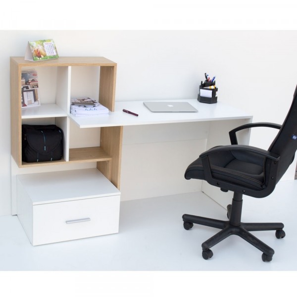 Računarski stol ASHA je moderan uredski stol, koji je dobavljiv u kombinaciji bijele boje i boje hrasta. Stol uključuje set četiri praktične police na kojima ćete ostaviti vaše stvari i predmete. Ispod polica je praktičan ormarić.