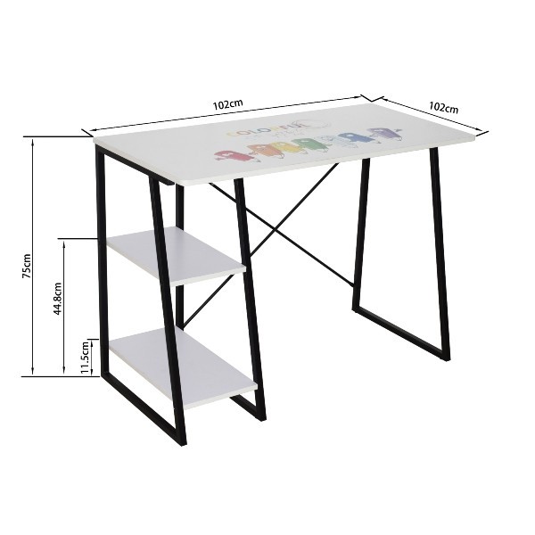 Ako vaše dijete voli otvorenu i funkcionalnu radnu površinu, onda je minimalistički stol FELIX odličan izbor za njega! Na lijevoj strani stola nalaze se dvije otvorene police na koje možete odlagati razni školski pribor i tako održavati praznu i urednu radnu površinu. Stol je jednostavnog dizajna sa šarenim printom na vrhu daske, što ga čini šarenijim pa je pogodan za sve dječje i mladenačke sobe.