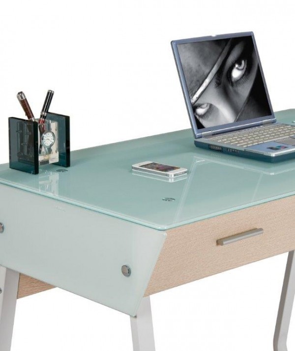 Radni stol GLASY je radni stol s dvije ladice. Polica je iz kaljenog bijeljenog stakla.