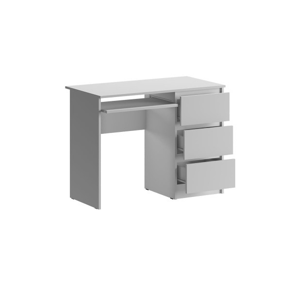 Radni stol Maida ima minimalistički dizajn koji ga čini pogodnim za korištenje i u dječjim i u sobama za mlade. Ima jednu otvorenu policu i čak tri prostrane ladice u koje dijete može pospremiti sav svoj školski pribor, tako da će radna površina uvijek biti uredna i čista. Dostupan je u bijeloj boji visokog sjaja, koja se savršeno uklapa u svaku prostoriju!