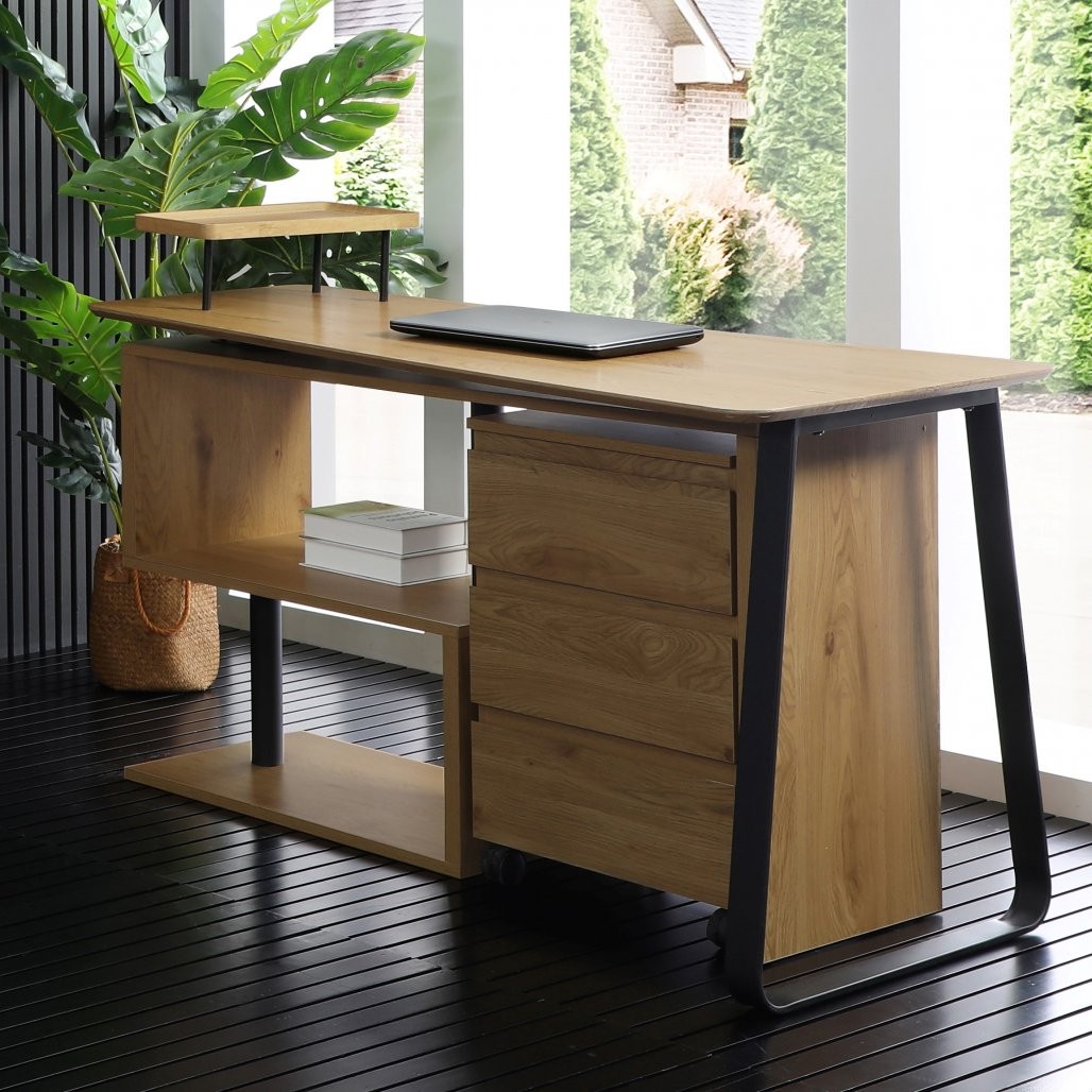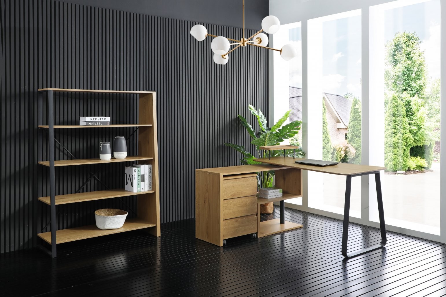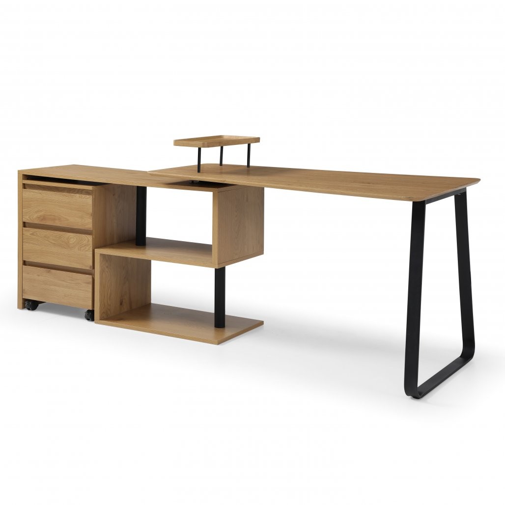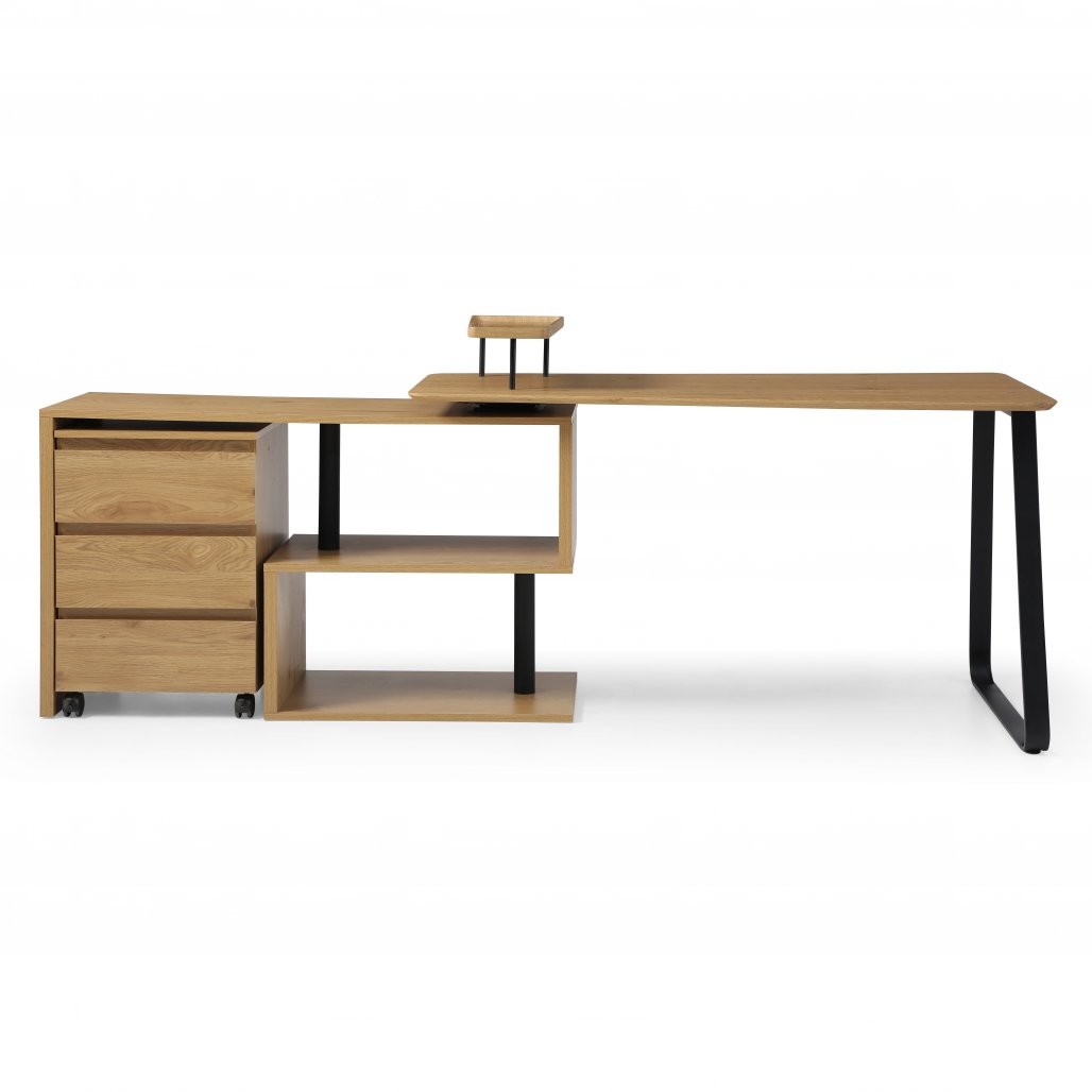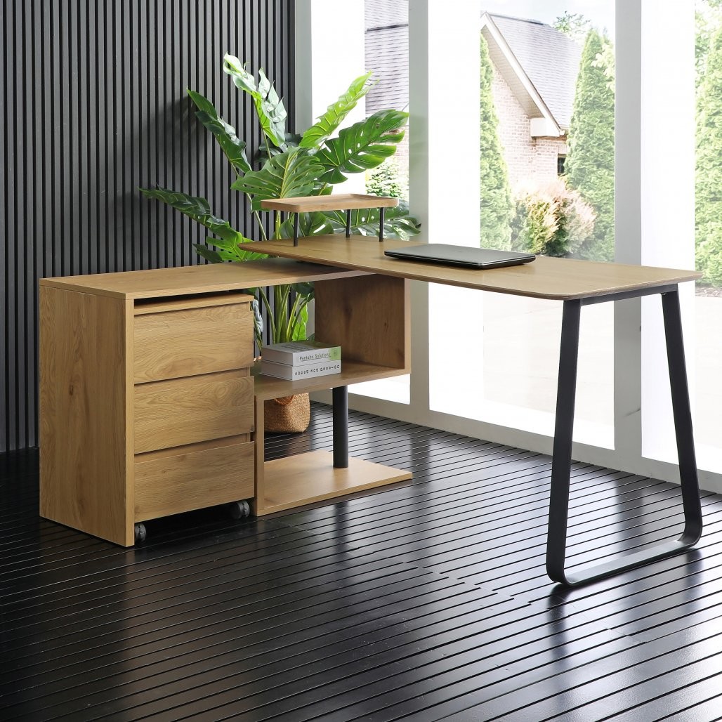 - Suvremeni radni stol koji se može proširiti iz običnog pravokutnog oblika u kutni stol u obliku slova L