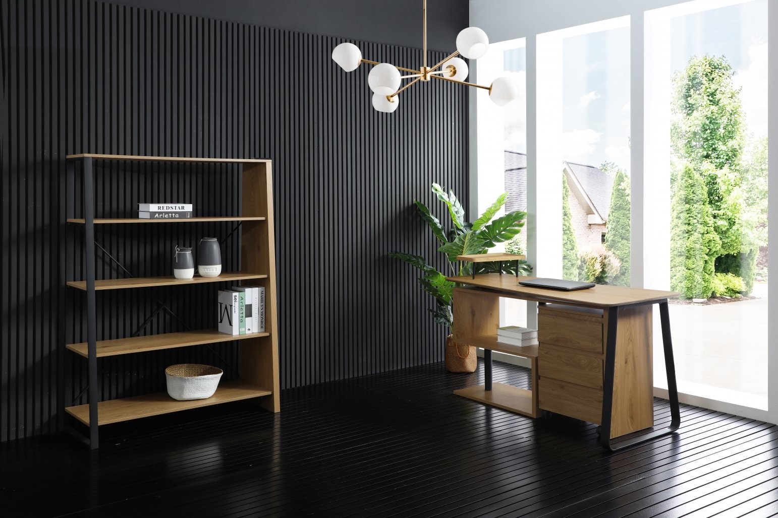 Suvremeni radni stol PLATIS koji se širi u kutni stol u obliku slova L, s dodatnom policom i mogućnošću pohrane.