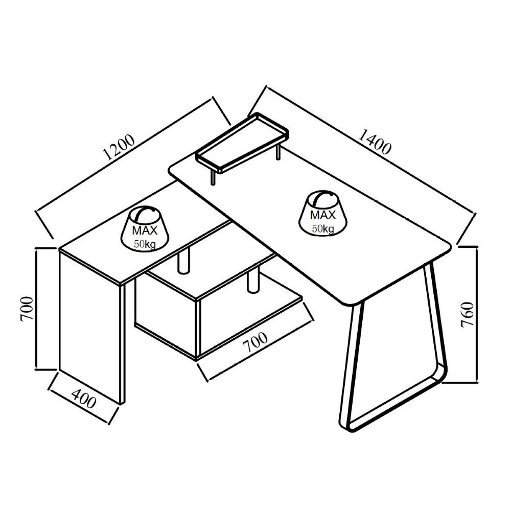 - Manji stol može se postaviti pravokutno na glavnu ploču, kako bi se stvorio kutni stol u obliku slova L, ili paralelno, kako bi se stvorila jedna pravokutna radna površina na dva nivoa