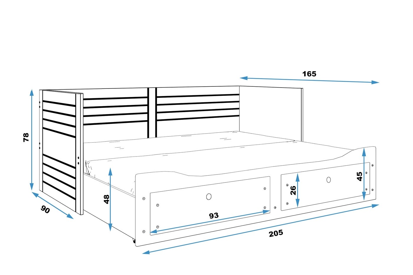Kreveti od pjene su dimenzija 80x200x9 cm. Kada je krevet razvučen dimenzija kreveta je 160x200 cm.