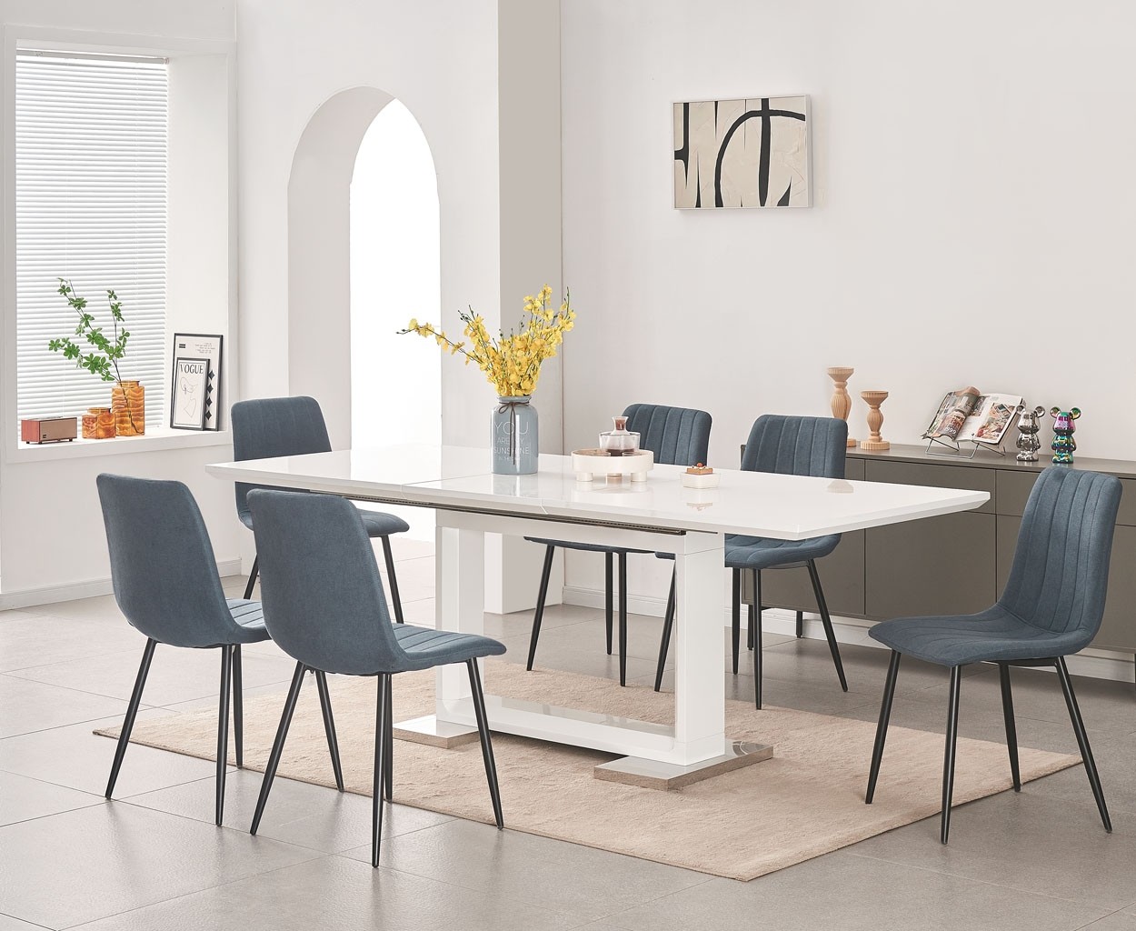 Produljivi stol NIKA 3 modernog je izgleda i dostupan je u bijeloj boji visokog sjaja koja će vas oduševiti i učiniti vaš prostor svjetlijim. U sredini se nalazi umetak koji se lako izvlači i otvara stol kako biste mogli ugostiti svoje prijatelje ili obitelj. Veličina stola je 76 cm. Pravokutna ploča stola i okvir izrađeni su od MDF materijala, a podne ploče od nehrđajućeg čelika.