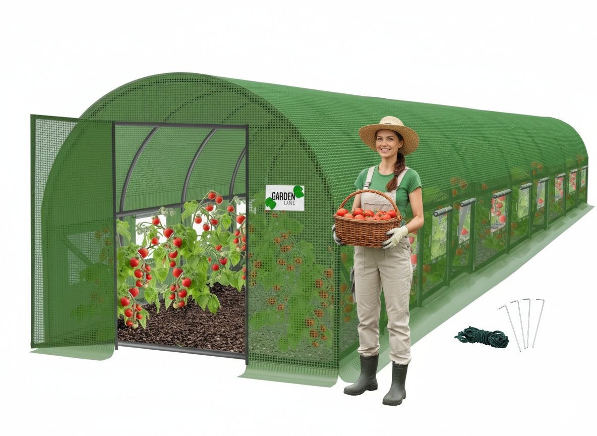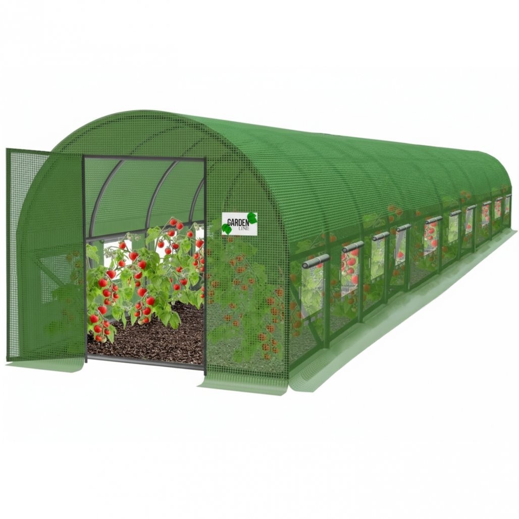 Desetsegmentna izvedba ponuja veliko uporabne površine. Vrata na tečajih omogočajo priročnejši vstop i izstop. Širša oblika je prikladna za organizirano vrtnarsko postavitev.