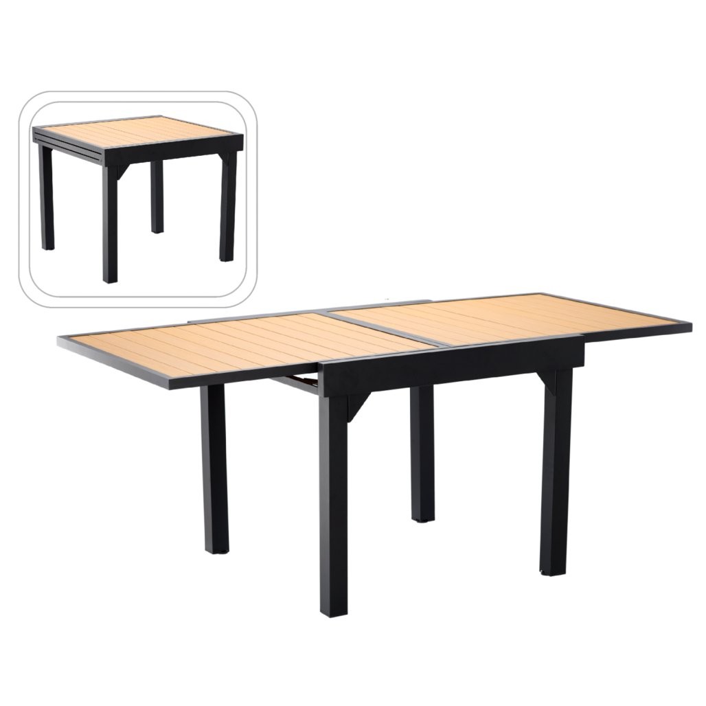 Raztegljiva aluminijasta stol Alex 90/180 x 90 cm je praktičan stol čistih linija i svestrane namjene. Crna boja djeluje elegantno i lijepo se uklapa u različite ambijente. Pri izdelavi su uporabljeni materijali, kao su aluminij, čelik i drvo.