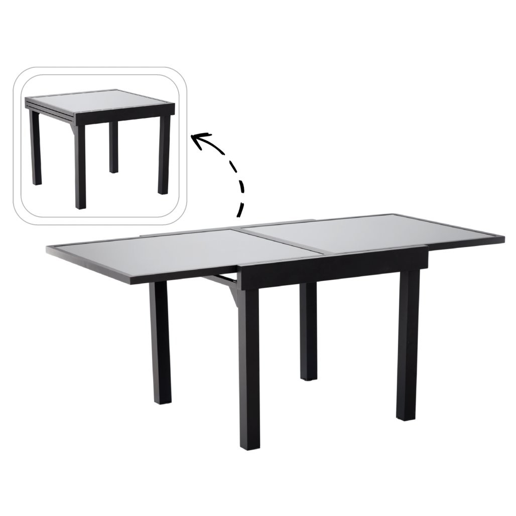 Raztegljiva aluminijasta stol Oliver 90/180 x 90 cm je praktičan stol čistih linija i svestrane namjene. Kombinacija boja crna i siva stvara usklađen izgled proizvoda. Pri izdelavi su uporabljeni materijali, kao su aluminij, staklo i drvo.