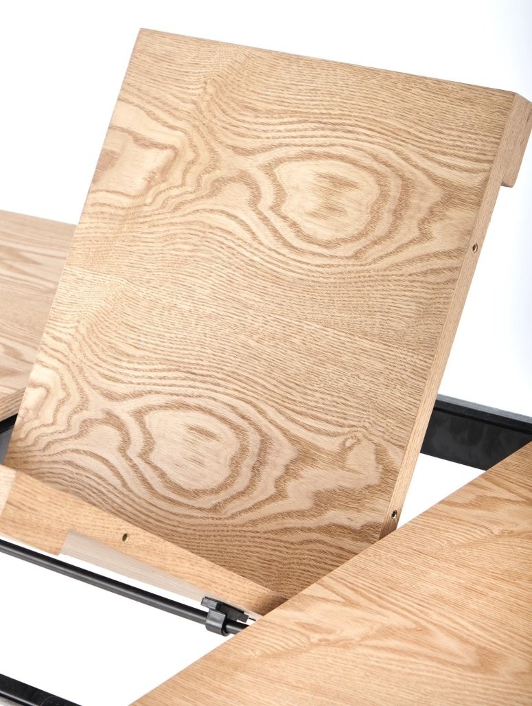 Produžni stol Anlen omogućuje produljenje dimenzije od 160 do 200 cm. Površina od prirodnog hrasta i crne metalne noge stvaraju elegantan industrijski izgled.