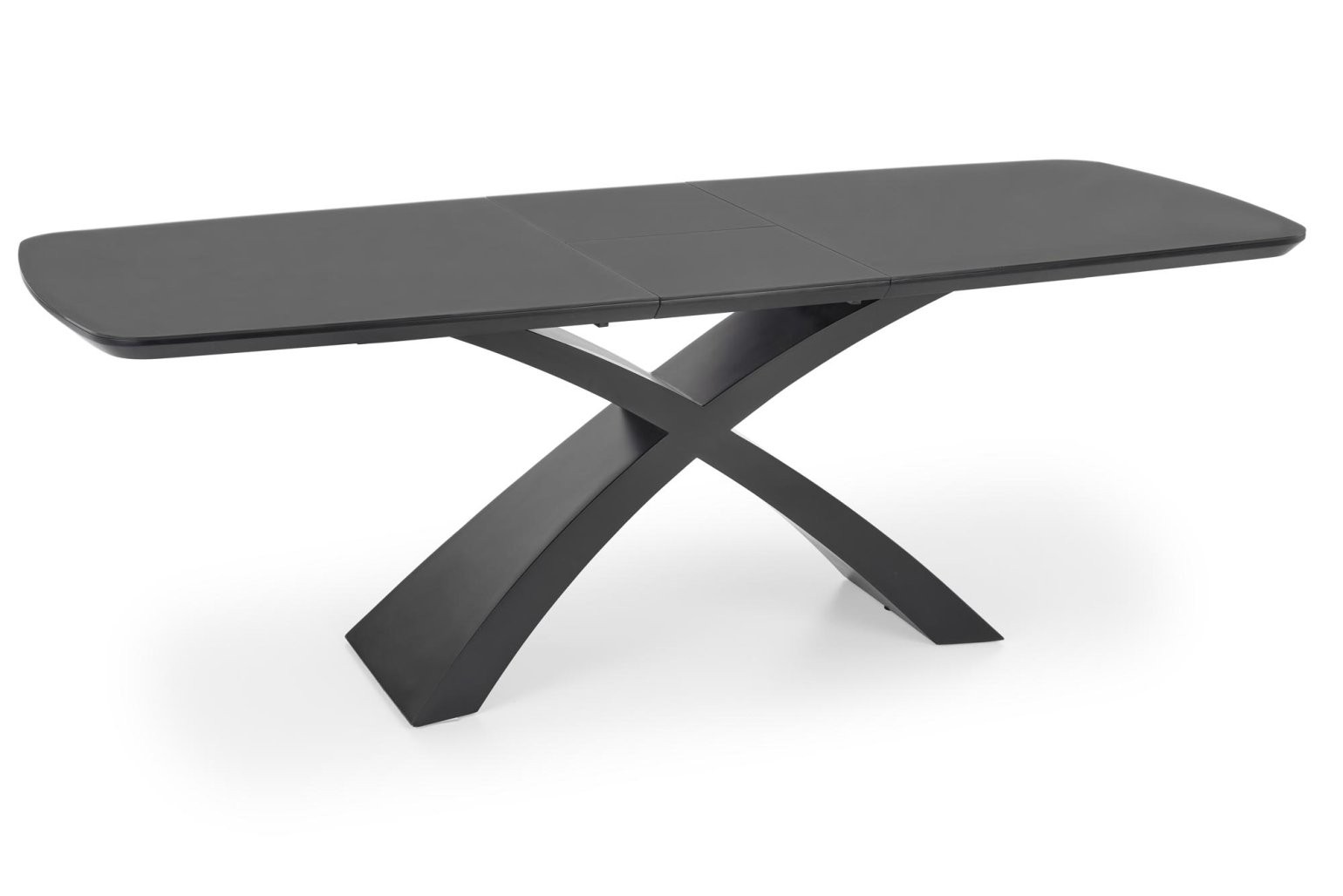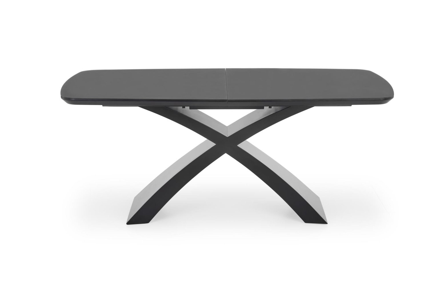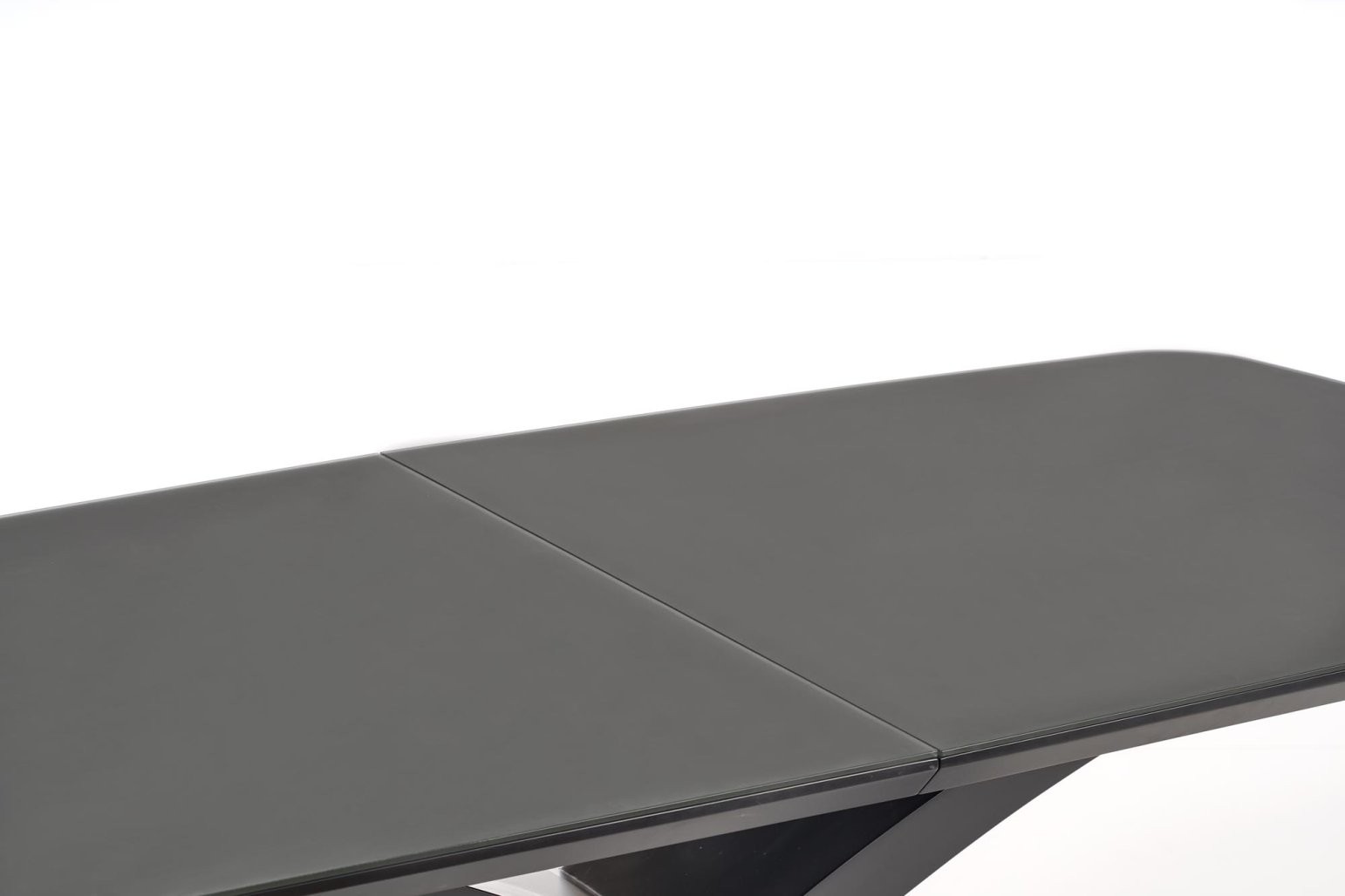 Produžni stol Blain omogućava jednostavno proširenje sa 180 cm na 220 cm. Staklena površina u tamno sivoj boji i crne MDF noge za moderan izgled.