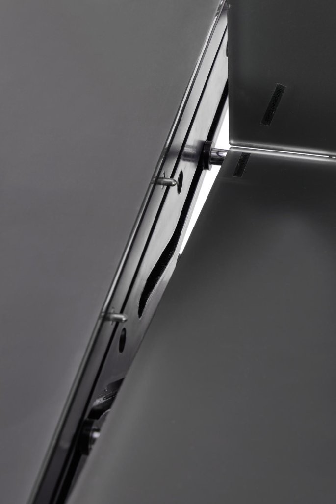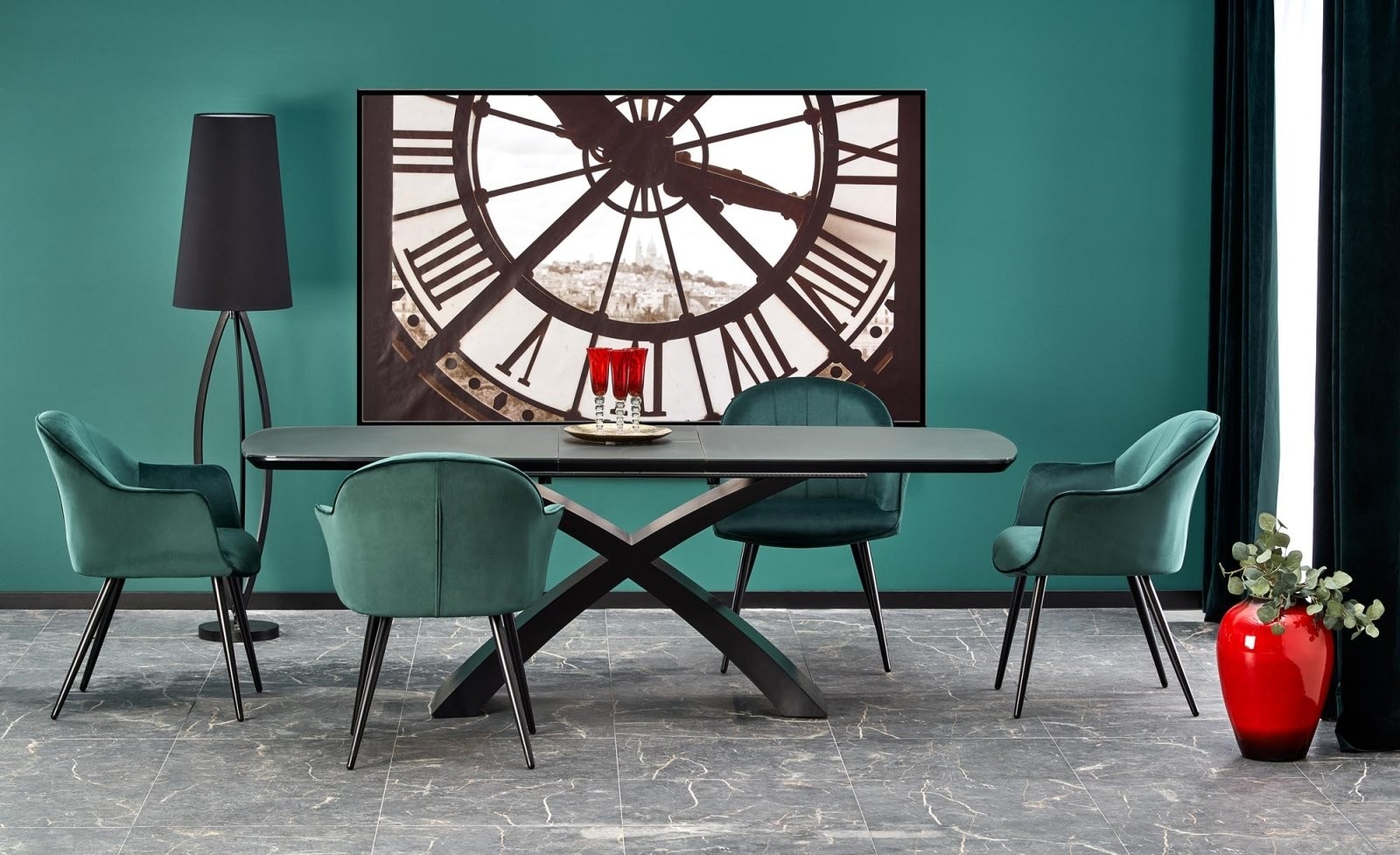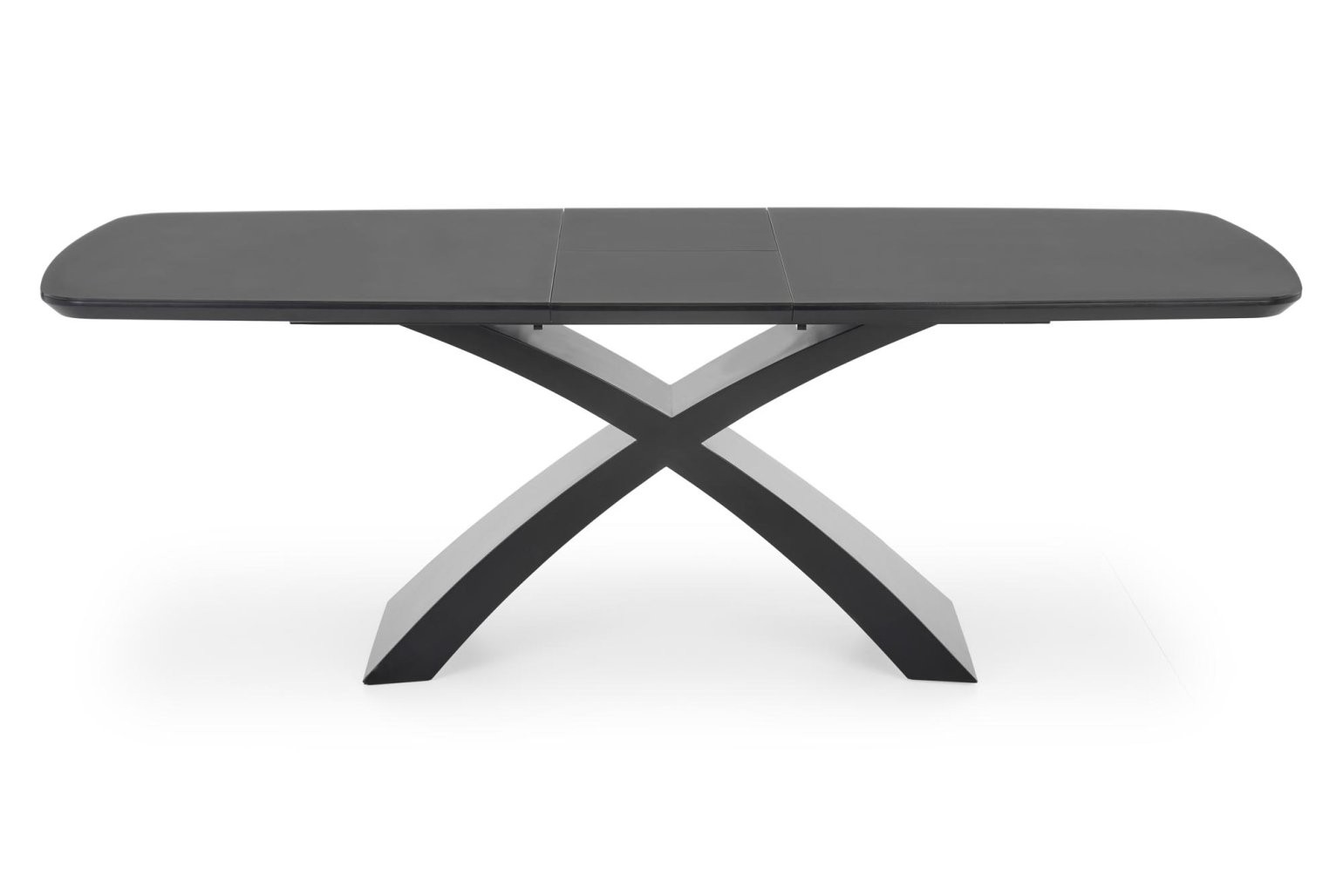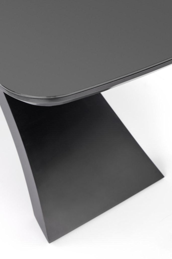 Produžni stol Blain omogućava jednostavno proširenje sa 180 cm na 220 cm. Staklena površina u tamno sivoj boji i crne MDF noge za moderan izgled.