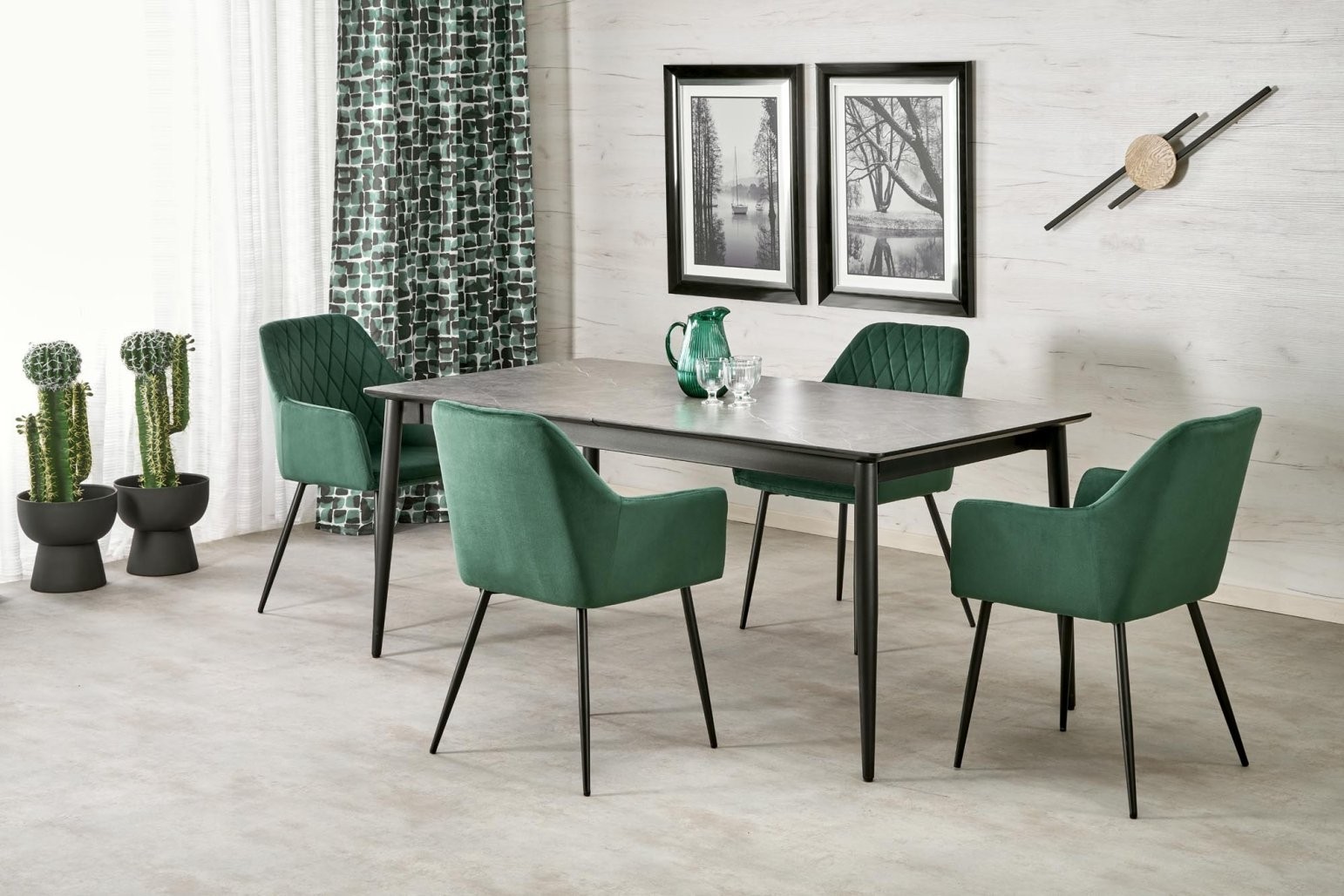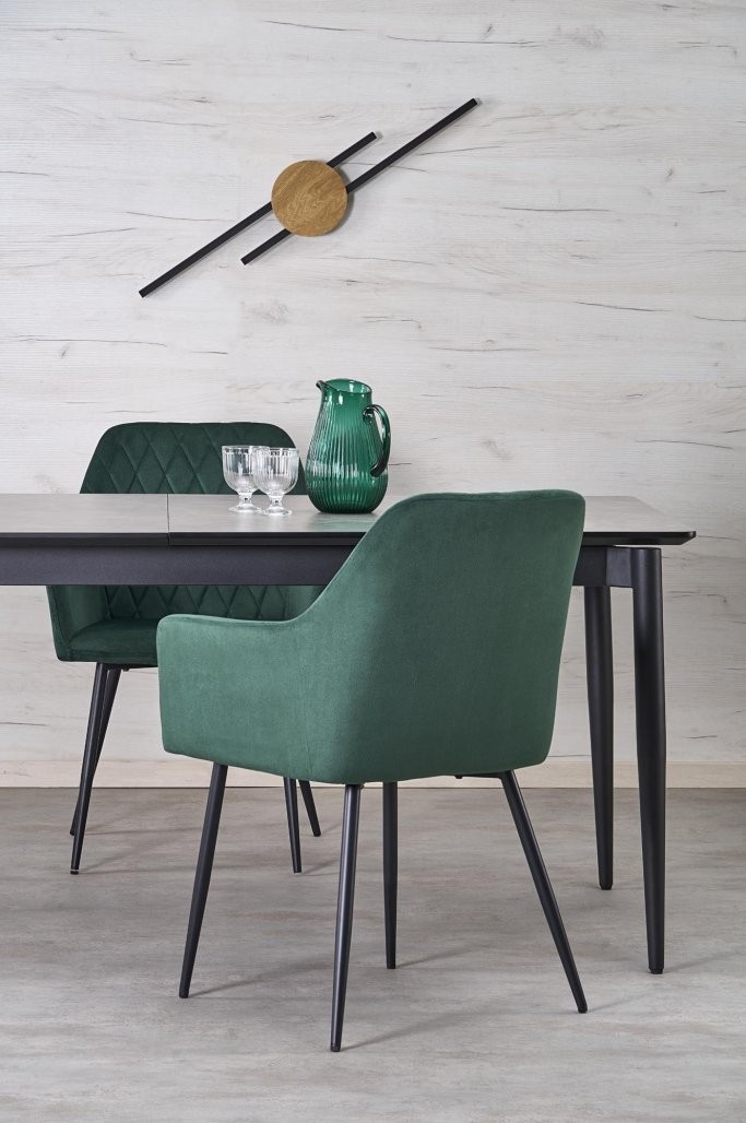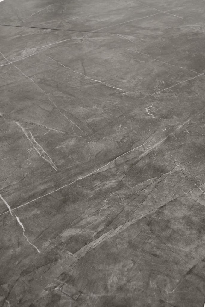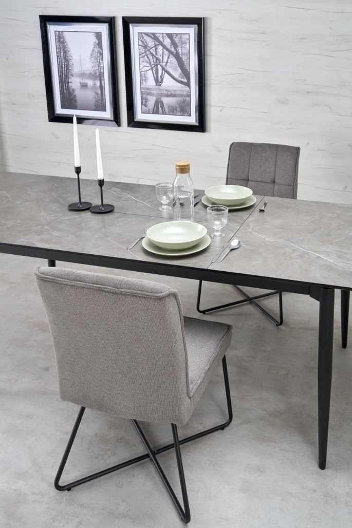 Produžni blagovaonski stol Bralon s površinom od sivog oraha i crnim metalnim okvirom. Duljina prilagodljiva, prikladna za 10 osoba. Savršeno se uklapa u moderan stil.