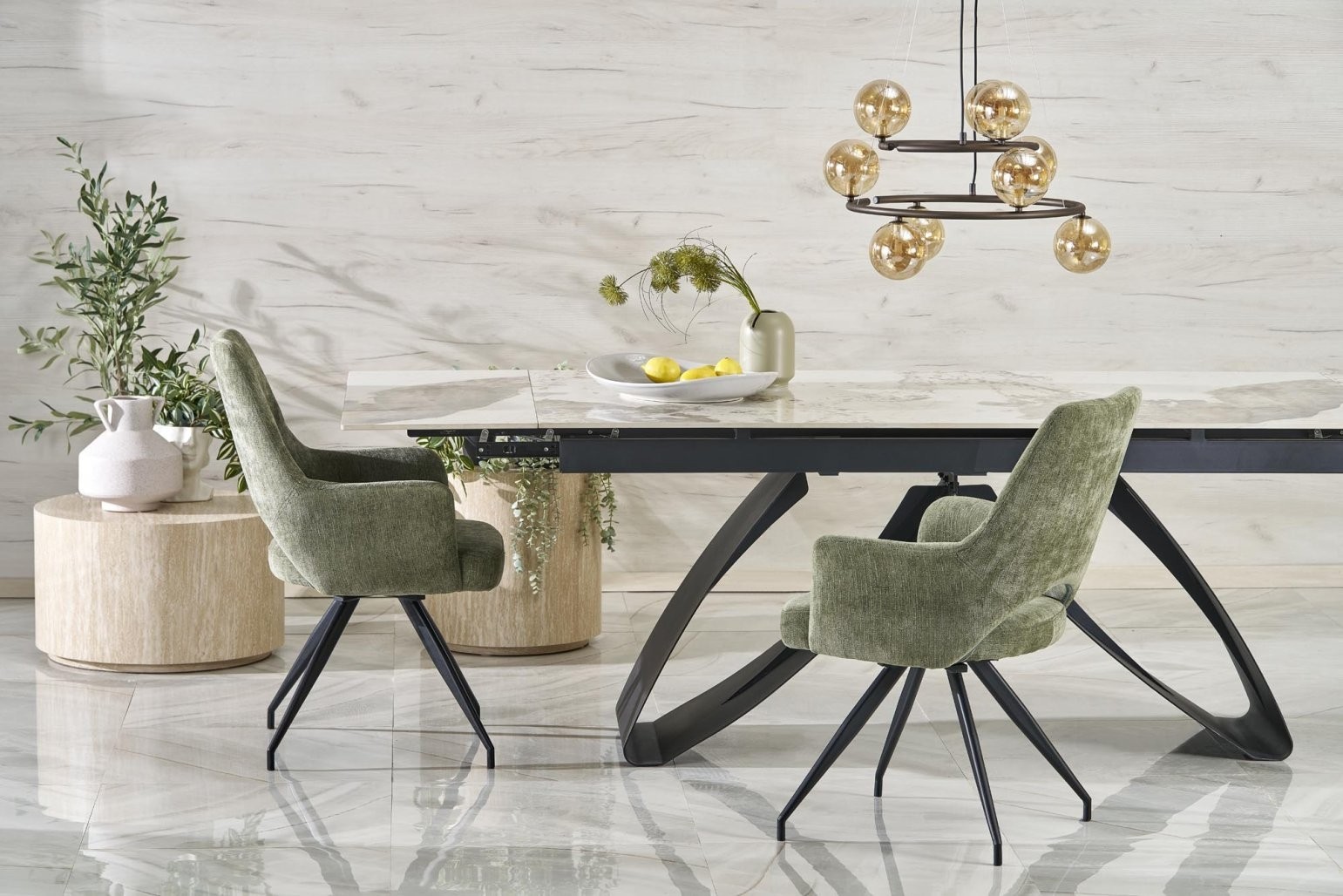 Produžni stol Delaro je elegantan izbor s bijelom mramornom površinom i crnim metalnim nogama. Blagovaonski stol rasteže se na 260 cm i nudi prostor za do 8 osoba.
