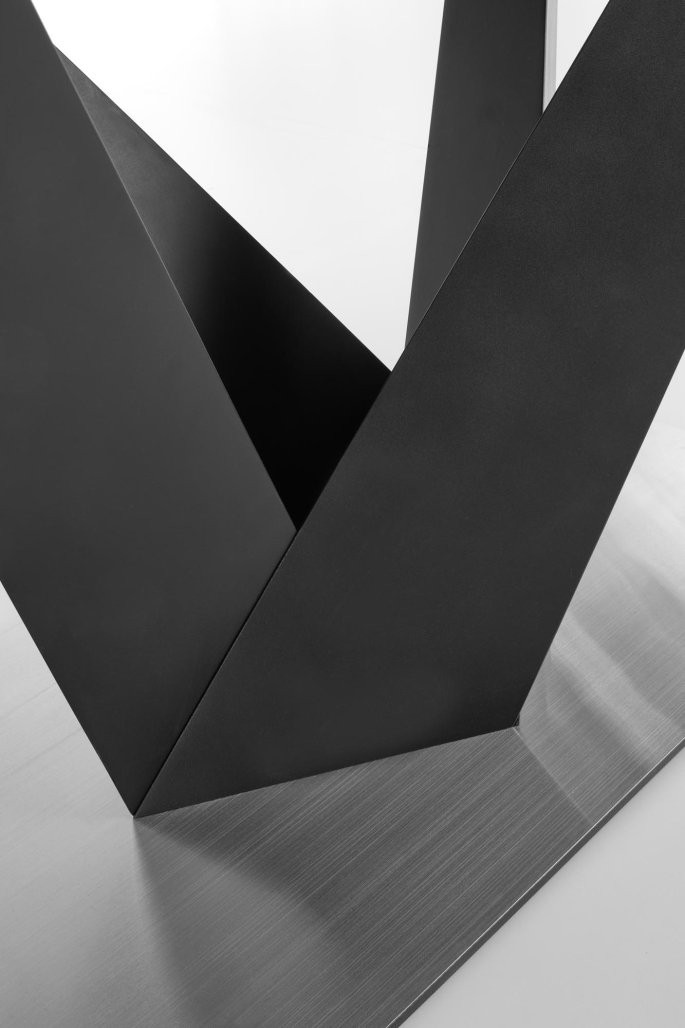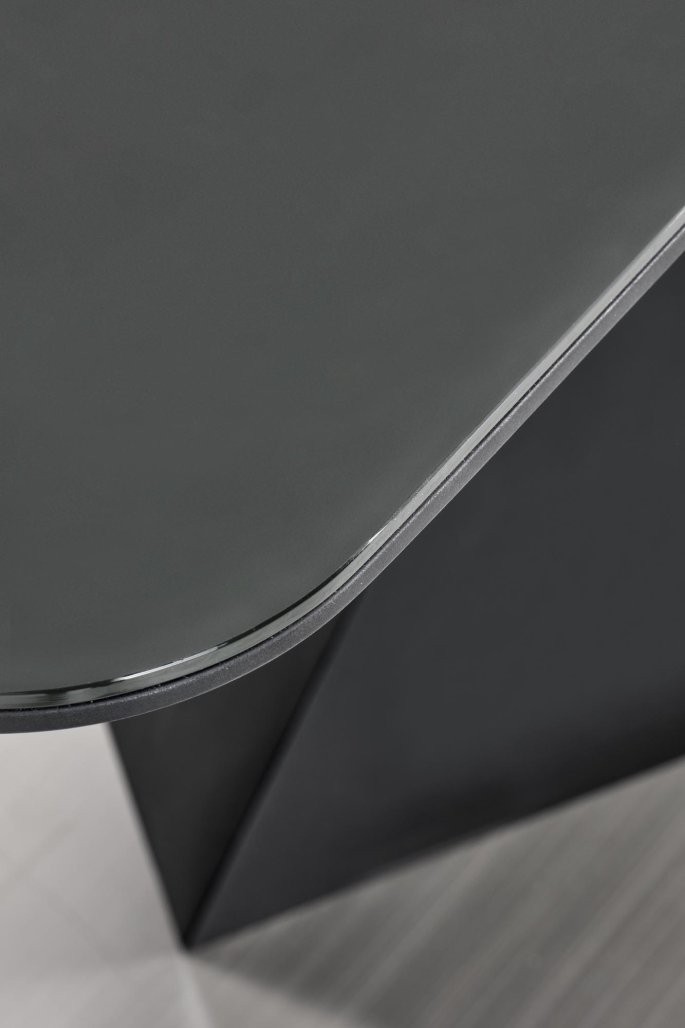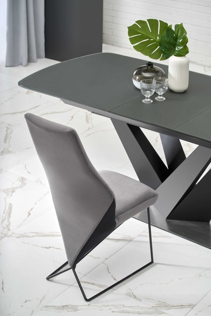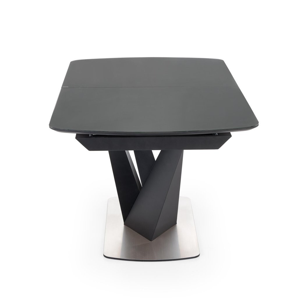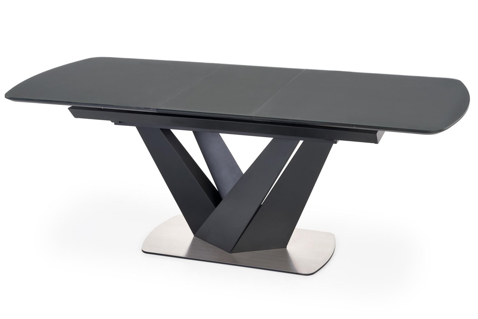 Produžni blagovaonski stol Eren s tamno sivom staklenom površinom i crnim nogama. Stol se može proširiti od 160 do 200 cm, omogućujući udobno smještanje do 8 osoba.