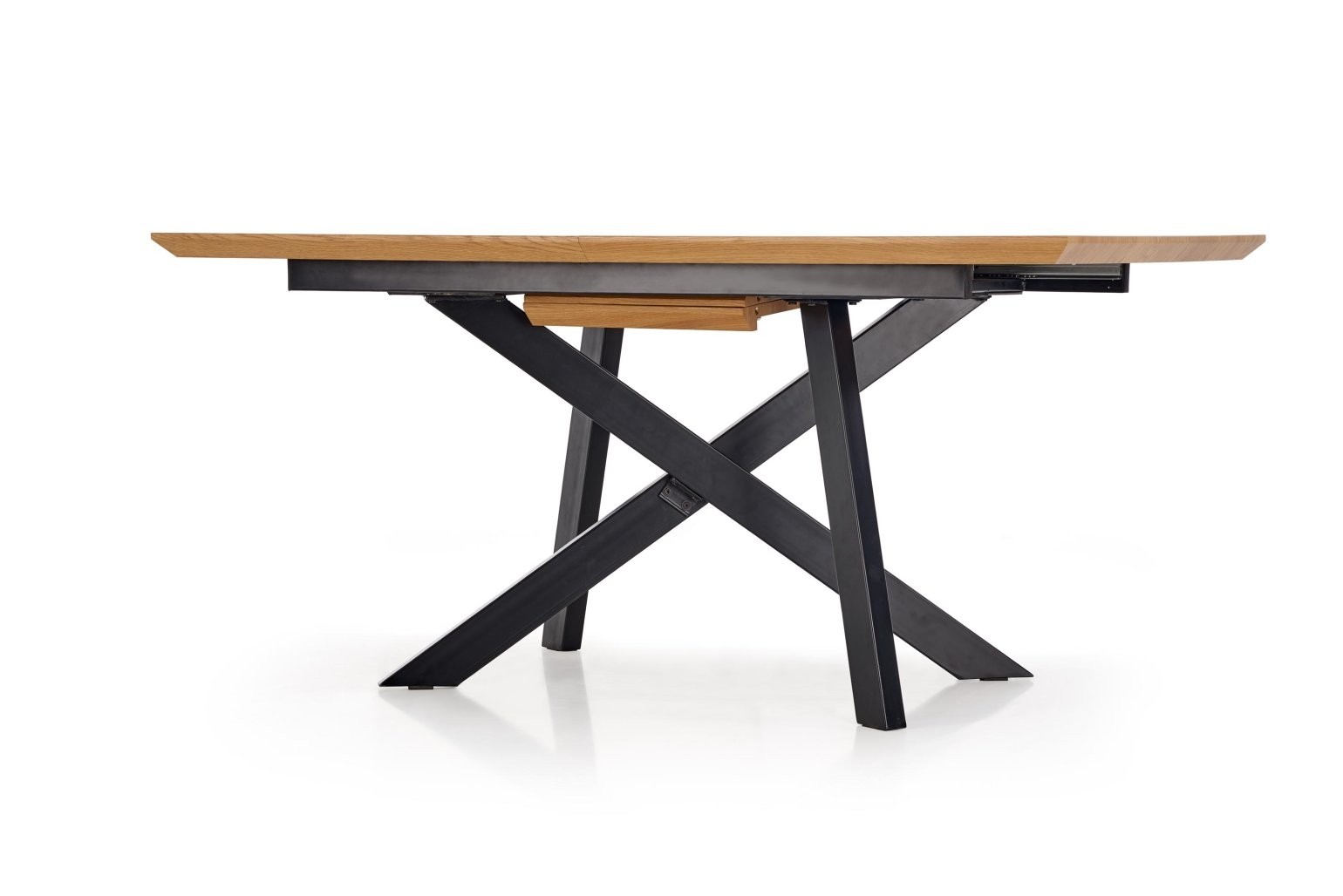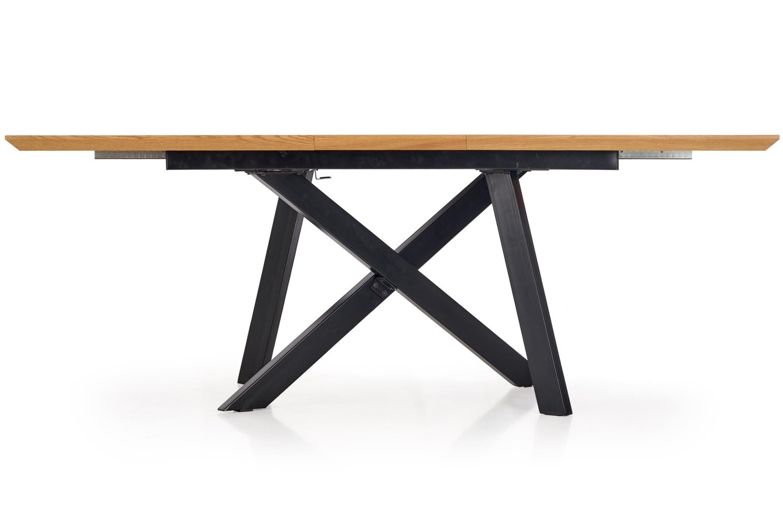 Produžni blagovaonski stol Farlin u zlato-hrastovom izgledu donosi eleganciju i modernost u vašu blagovaonicu. Podesiva duljina od 160 do 200 cm prikladna je za 6 do 8 osoba. Crne metalne noge daju industrijski dojam.