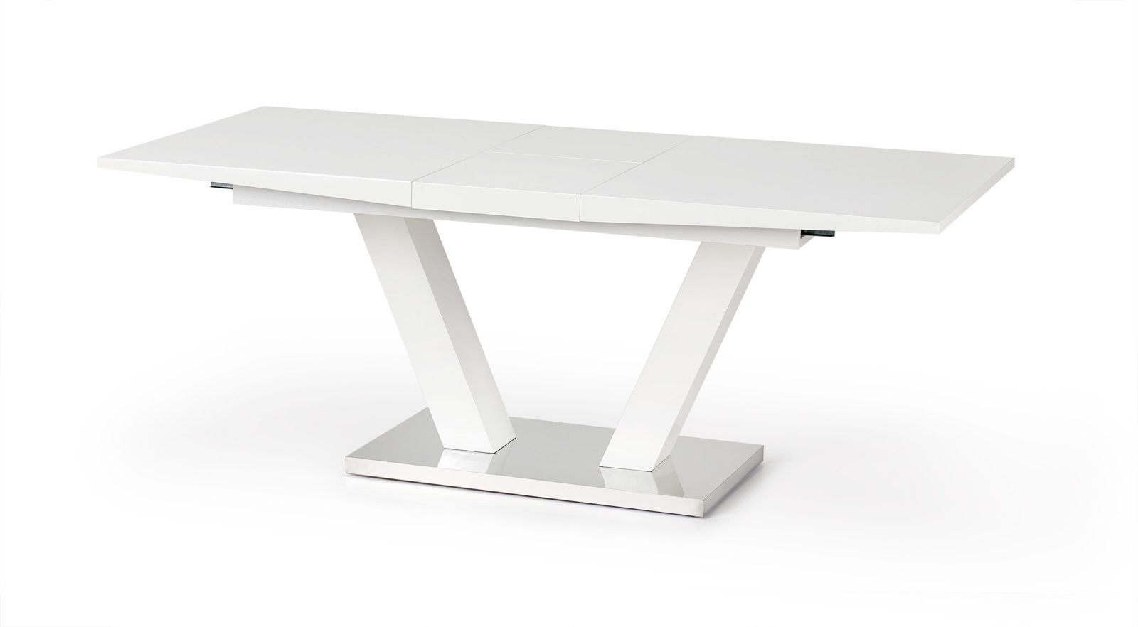 Produžni stol Pelin, s jednostavnim modernim izgledom, izrađen od lakiranog MDF-a i nehrđajućeg čelika. Pruža dodatno proširenje duljine od 160 do 200 cm, pogodan za 6-8 osoba.