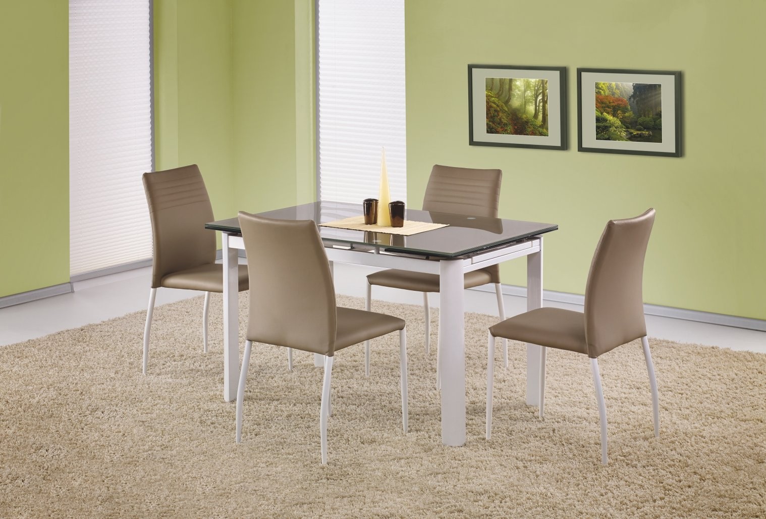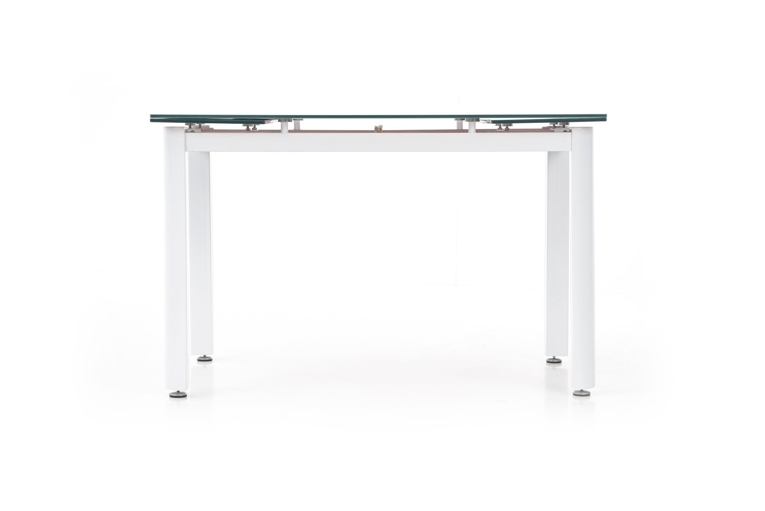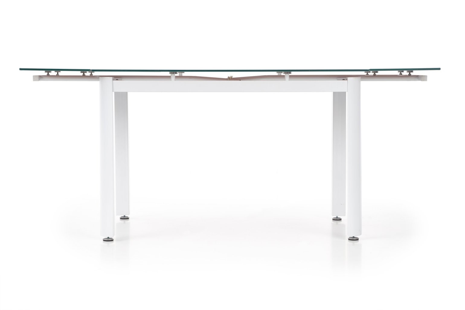 Produživi stol Terin s bež staklenom pločom i bijelim okvirom donosi eleganciju u svaki dom. Prilagodljiv dizajn omogućava upotrebu za 4 do 8 osoba i idealan je za veće obiteljske obroke.