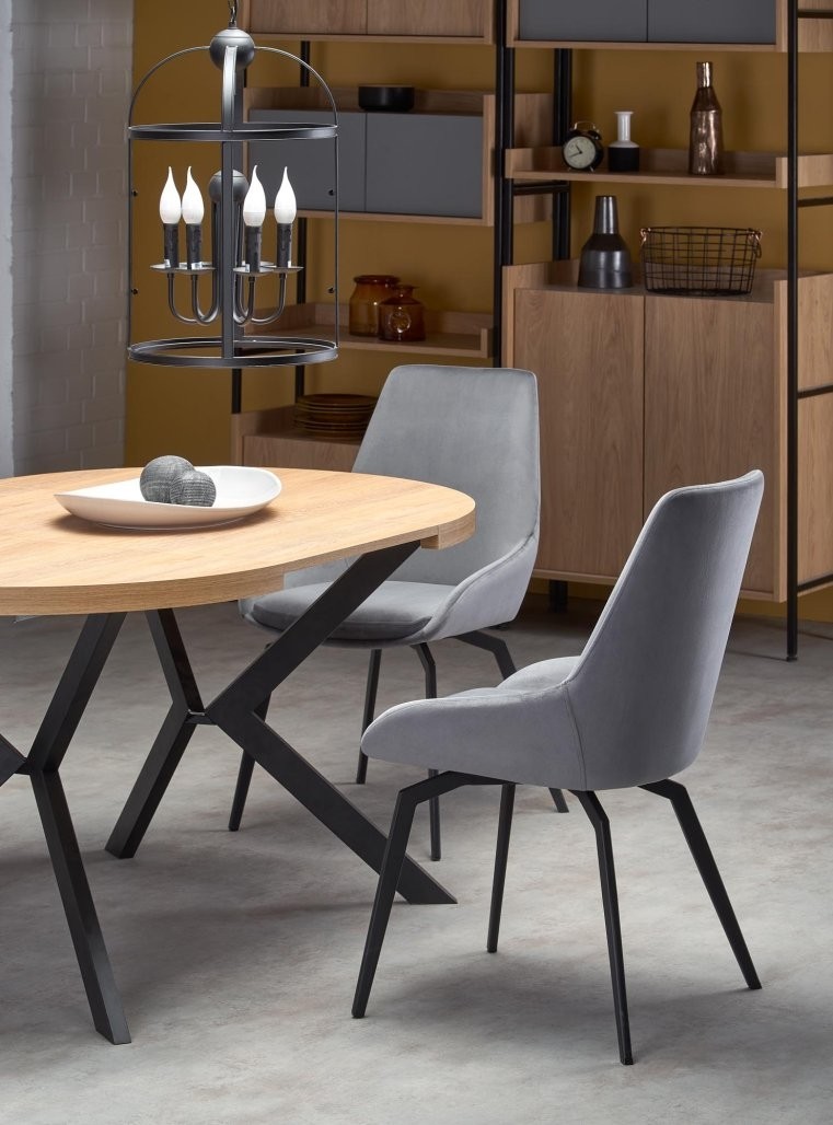 Produžni stol Termas s prelijepim zlatnim hrastom i crnim okvirom donosi industrijski stil u vašu blagovaonicu. Njena funkcionalnost omogućuje lako prilagođavanje veličine za goste.