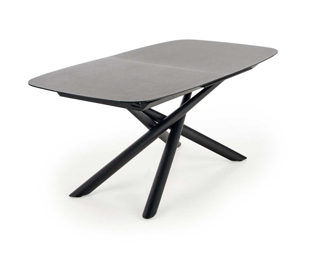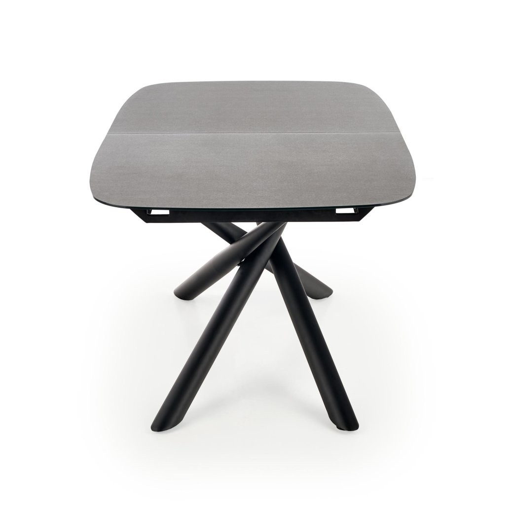 Produžni blagovaonski stol Urion sa staklenom površinom i crnim metalnim okvirom. Podesiva duljina omogućava udobno posluživanje za 8 do 10 osoba.