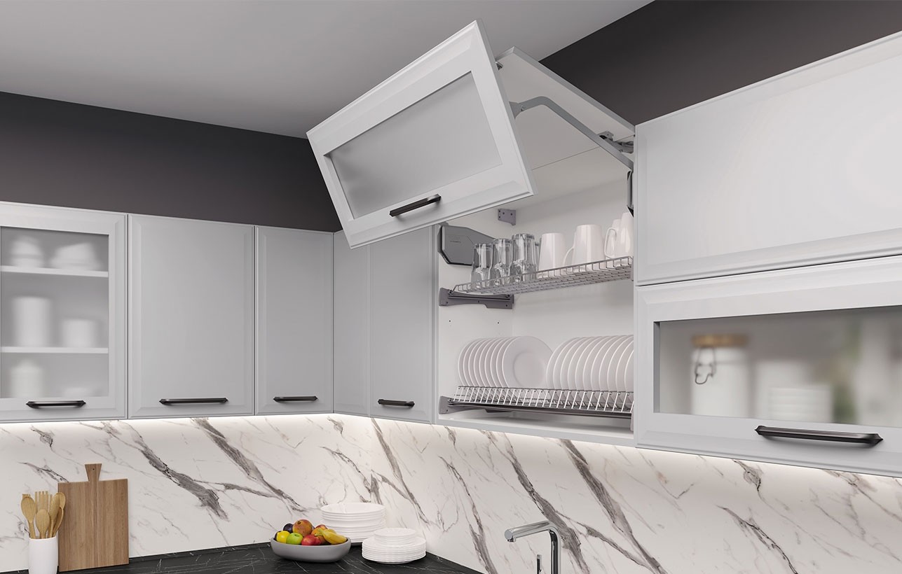 Svi elementi kuhinje EVIA imaju funkciju tihog zatvaranja, što olakšava svakodnevnu upotrebu i sprječava prekomjerno trošenje. UV lak koji prekriva fronte svih elemenata 4 puta je jači od klasičnog laka pa će kuhinja dugo izgledati kao nova i neće biti ogrebotina niti oštećenja.