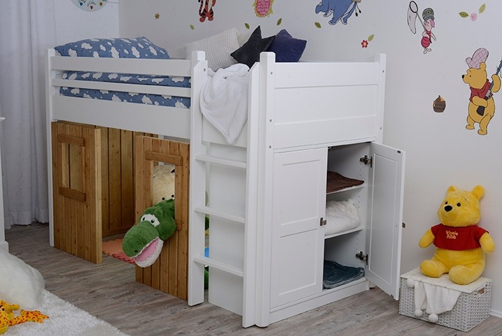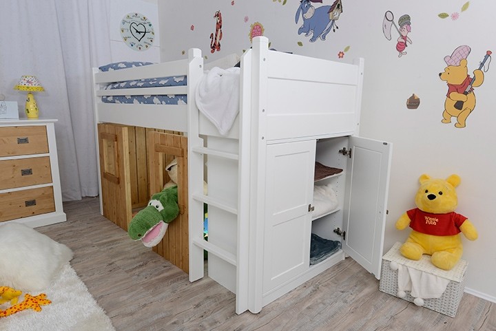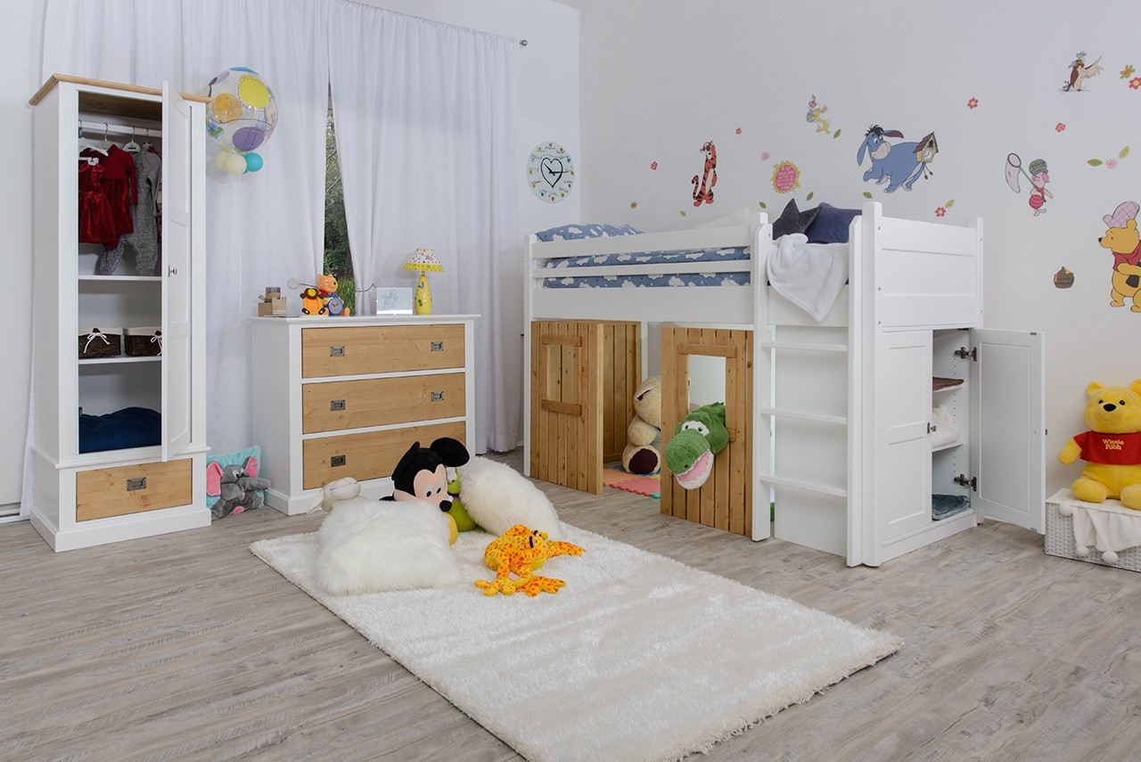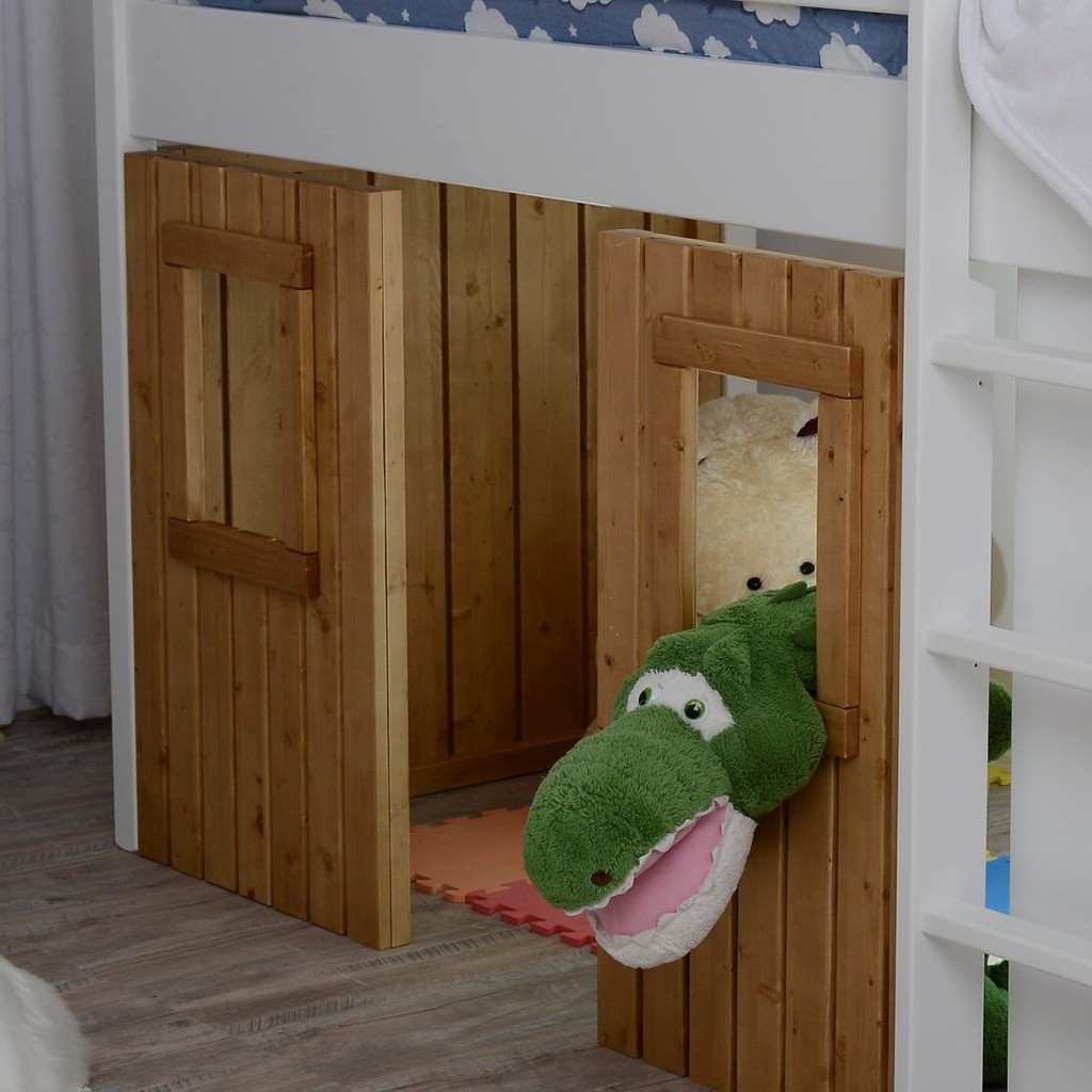 Opremite otroško sobico s sanjskim pogradom DREAM, ki ni le postelja, temveč tudi unikaten prostor za igranje, ki odpira vrata v svet domišljije! Na vrhu ima udobno posteljo z varnostno ograjico, spodaj pa prikupen prostor za igranje ter priročno omaro s policami kamor lahko pospravite razne igrače ali oblačila. Ponaša se s kvaliteto, saj je izdelana iz kombinacije masivne bukve in kvalitetnih MDF plošč.