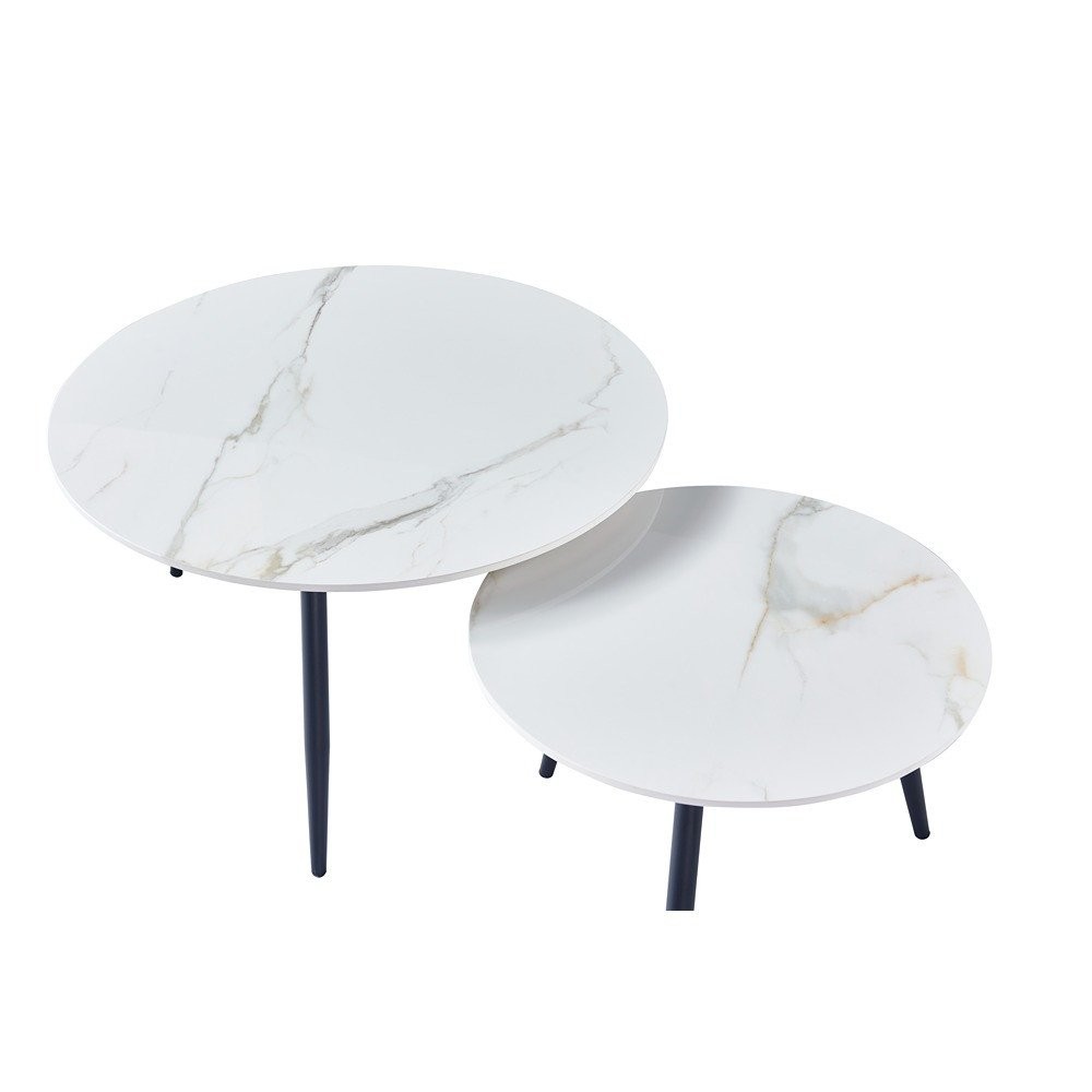 Set dviju klubskih stolića GEMINI 2 savršen je izbor za vaš prostor. S elegantnom bijelo-zlatnom bojom i uzorkom mramora unosi stil i funkcionalnost.