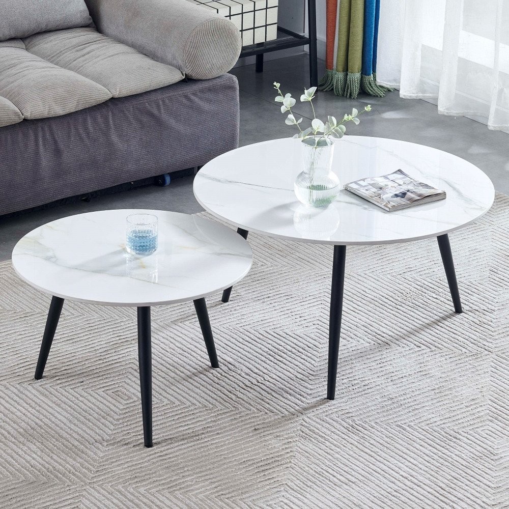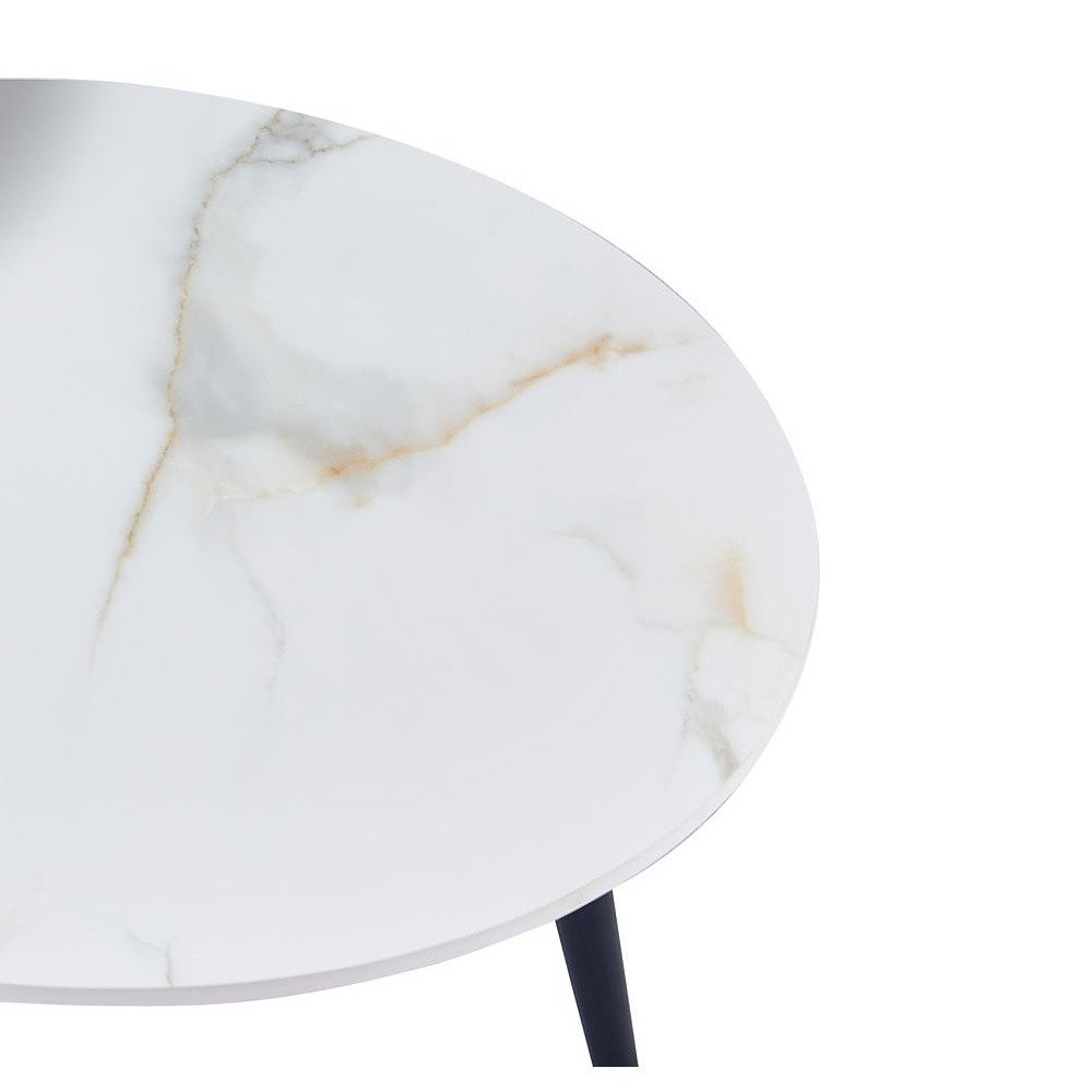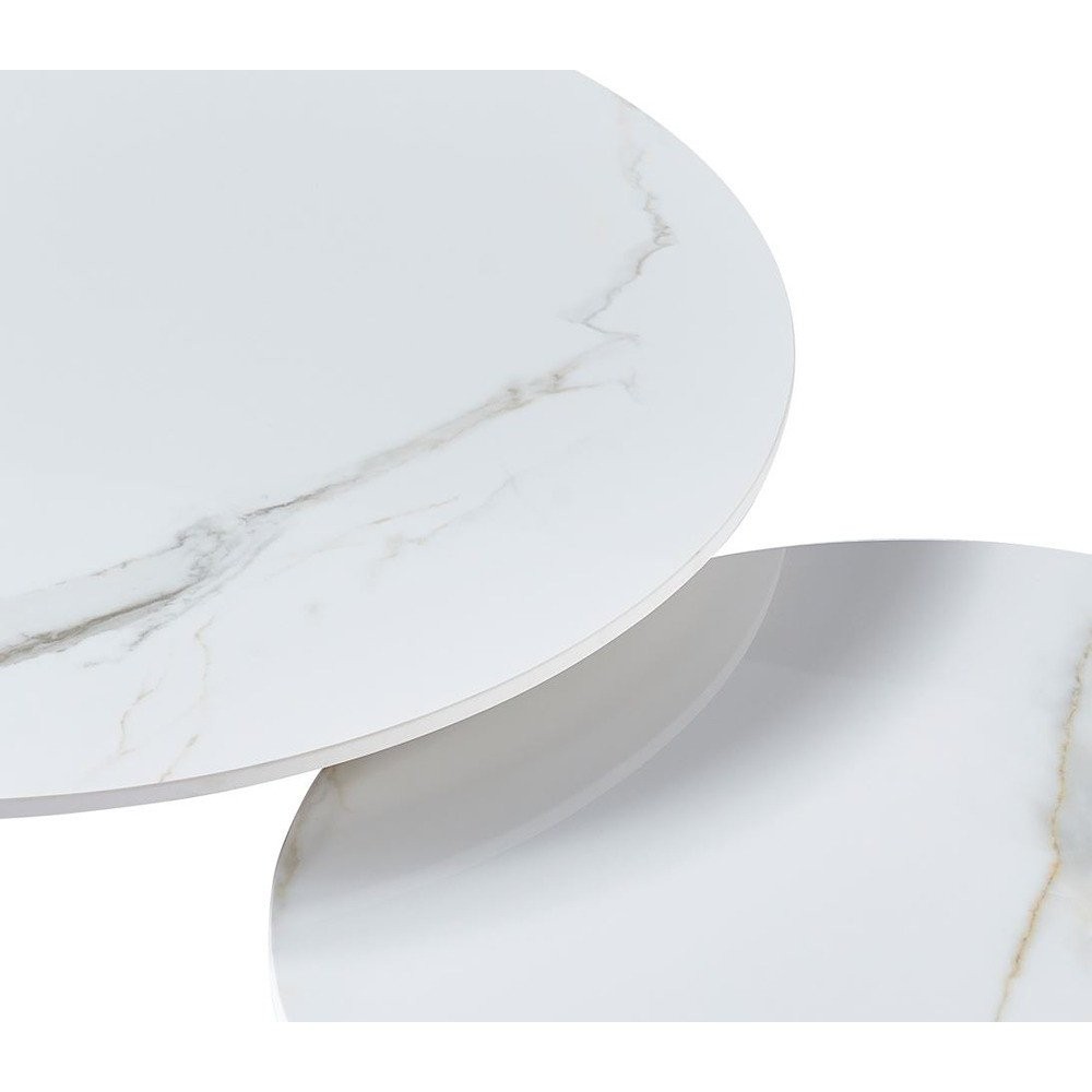 - Set dviju klubskih stolića okruglog oblika, u Kass bijelo-zlatnoj boji visokog sjaja i uzorku mramora, prožetog zlatnim žilama