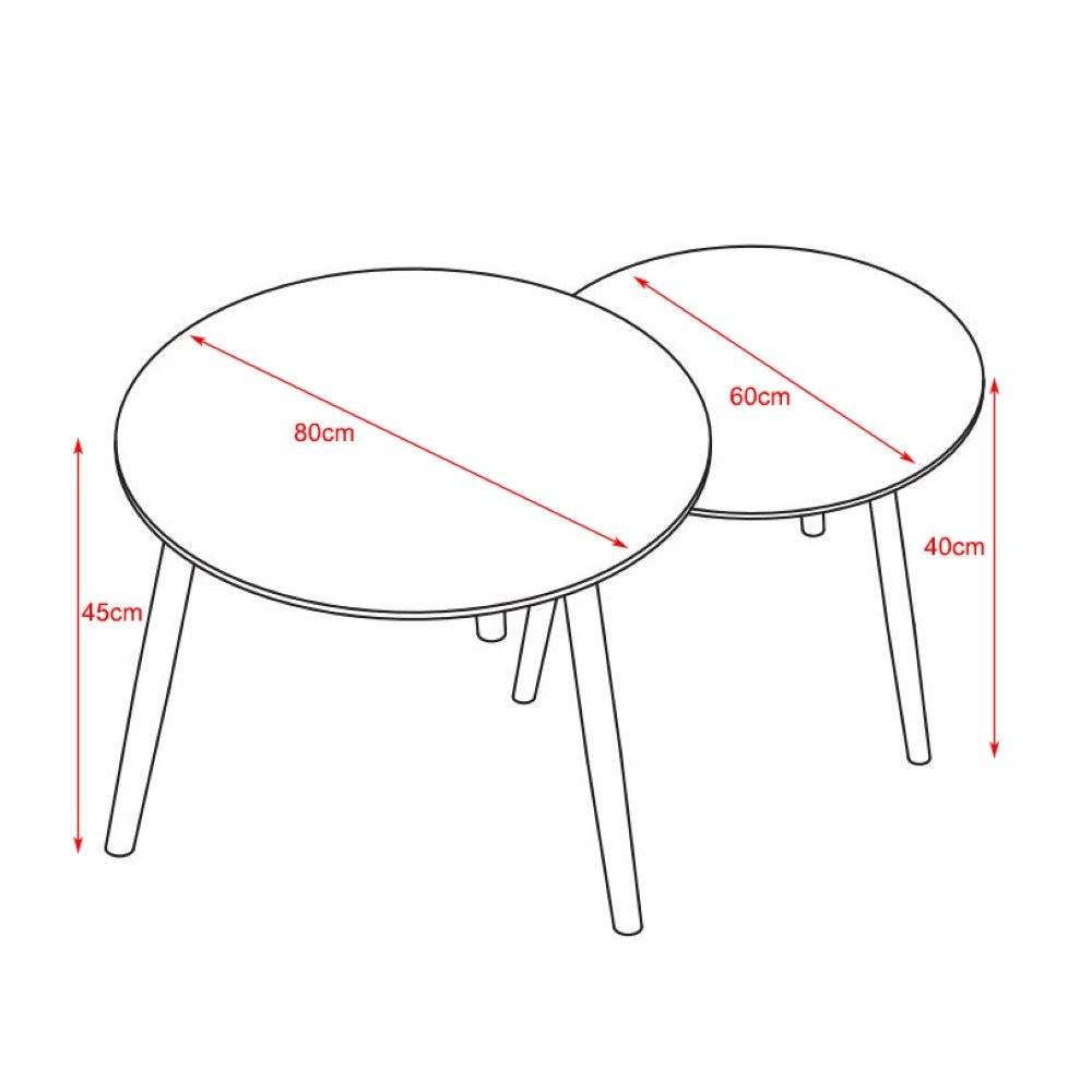 - Veći stol ima promjer 80 cm i visinu 45 cm, a manji stol ima promjer 60 cm i visinu 40 cm