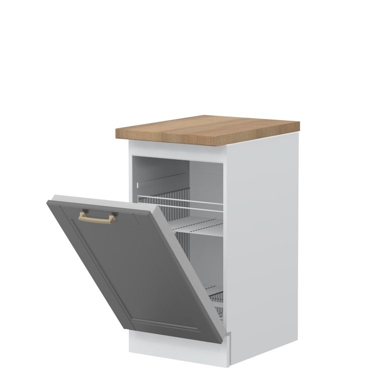 Set uključuje prednju stranu, postolje, pult i ručku za ugradni stroj za pranje posuđa, koja nema vidan panel za upravljanje. U ponudi je u elegantnim bijeloj i grafit boji i u klasičnom dizajnu, koji je uvijek moderan i odlično izgleda u svakom domu. Ima funkciju tihog zatvaranja koja pomaže lakšoj svakodnevnoj uporabi. Stranice nisu uključene!