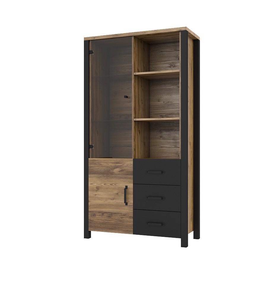 Široka vitrina OLIN dostupna je u kombinaciji smreke i crne boje i modernog je izgleda. Široka vitrina sadrži puno prostora za pohranu i odlaganje, što znači da ćete uvijek imati uredan i čist dnevni boravak.
