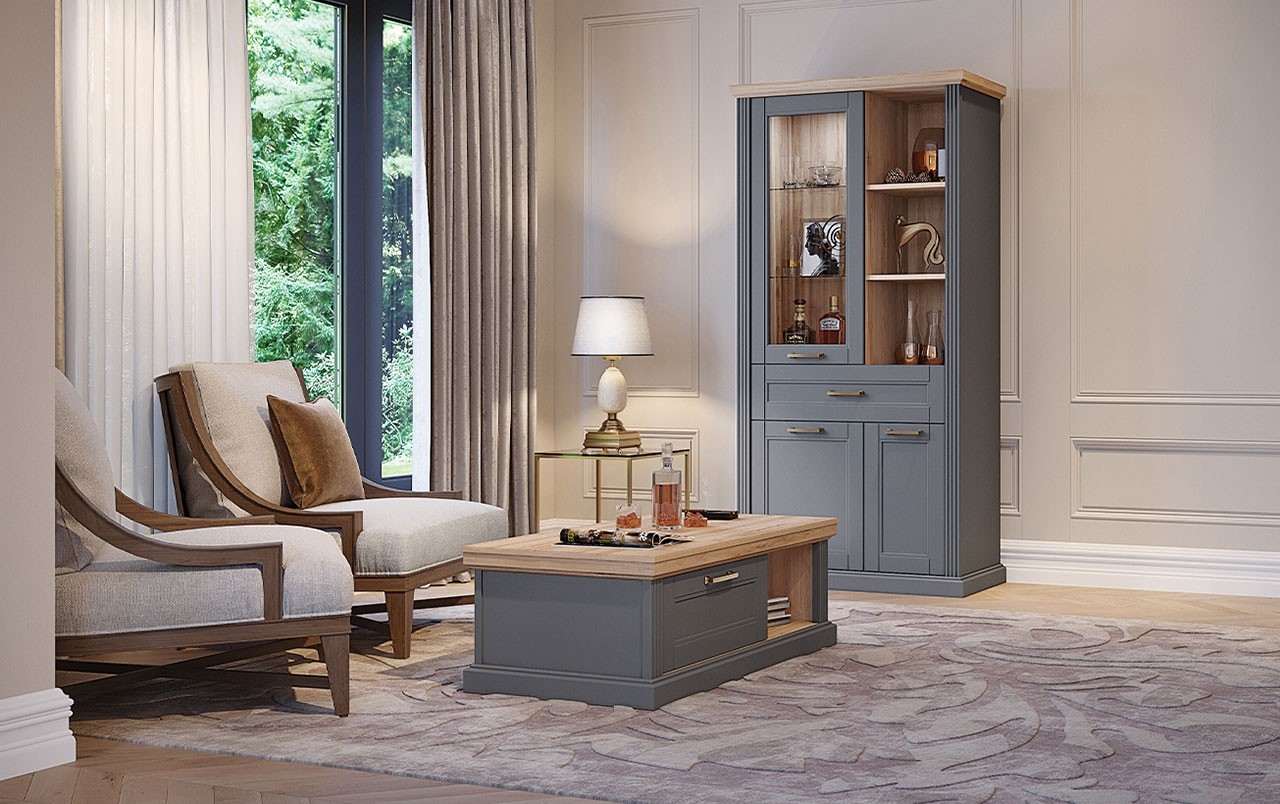 Želite imati elegantnu i prefinjenu dnevnu sobu, sa prijatnim ambijentom za druženje? Opremite je sa širokom vitrinom RADDA TARA, koja se odlikuje klasičnim dizajnom uz koji će vaš dom biti elegantniji. Nudi veliki prostor za pospravljanje knjiga, pića, čaša i raznih dekorativnih predmeta.
