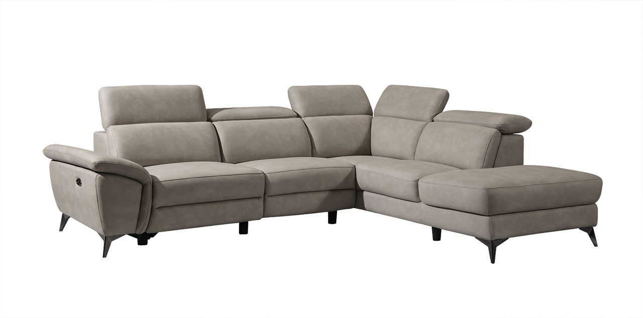 Prekrasna sjedeća garnitura koja će vašem domu dodati svježinu i dašak modernog izgleda. Zbog svog oblika pristaje u kut vašeg dnevnog boravka, a presvučena je izdržljivom tkaninom. Ima veliki prostor ispod sjedala gdje možete spremiti svoju odjeću. Garnitura je opremljena električnim podešavanjem naslona, a ima maksimalno opterećenje 120 kg po pojedinom sjedalu.