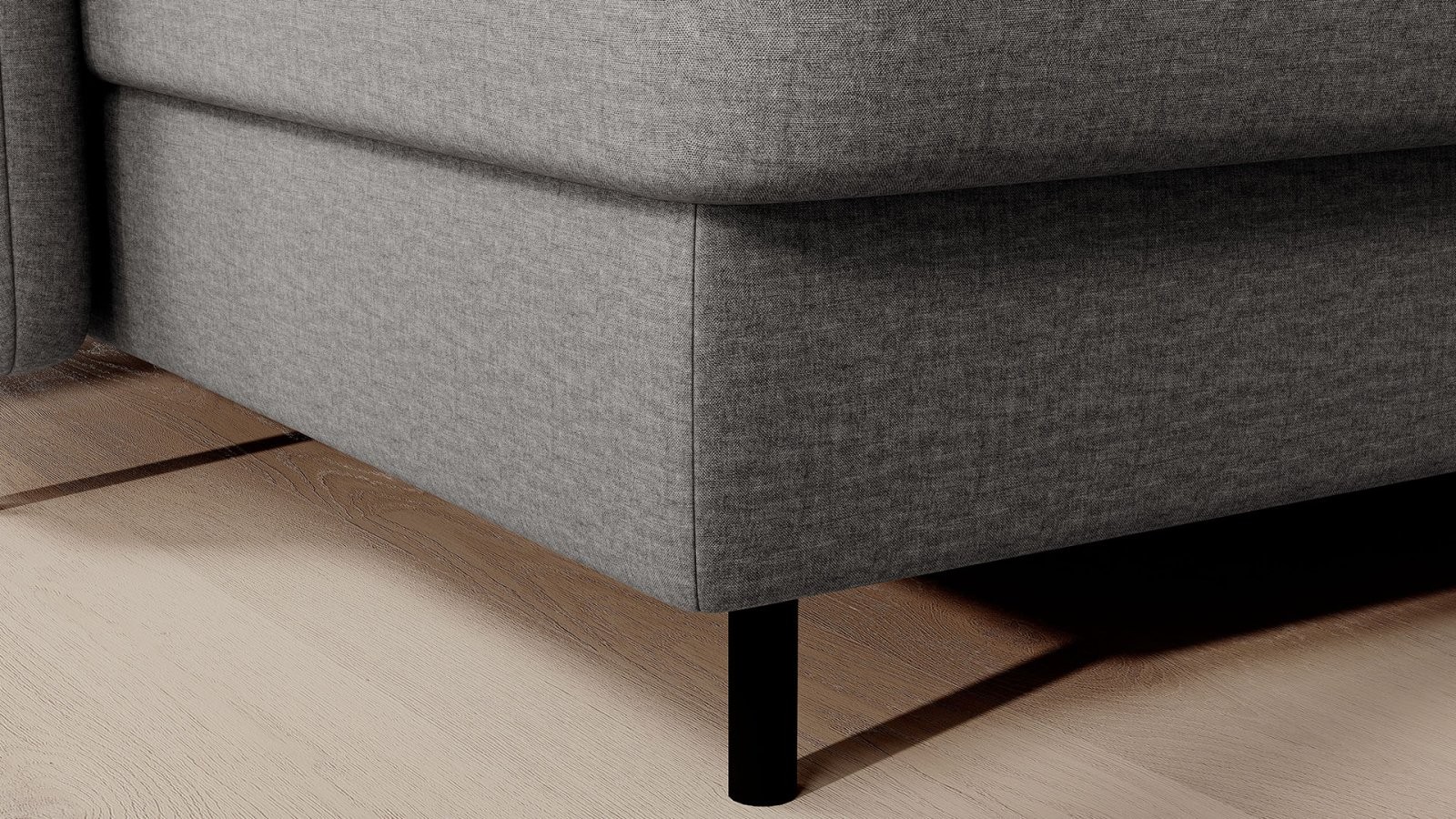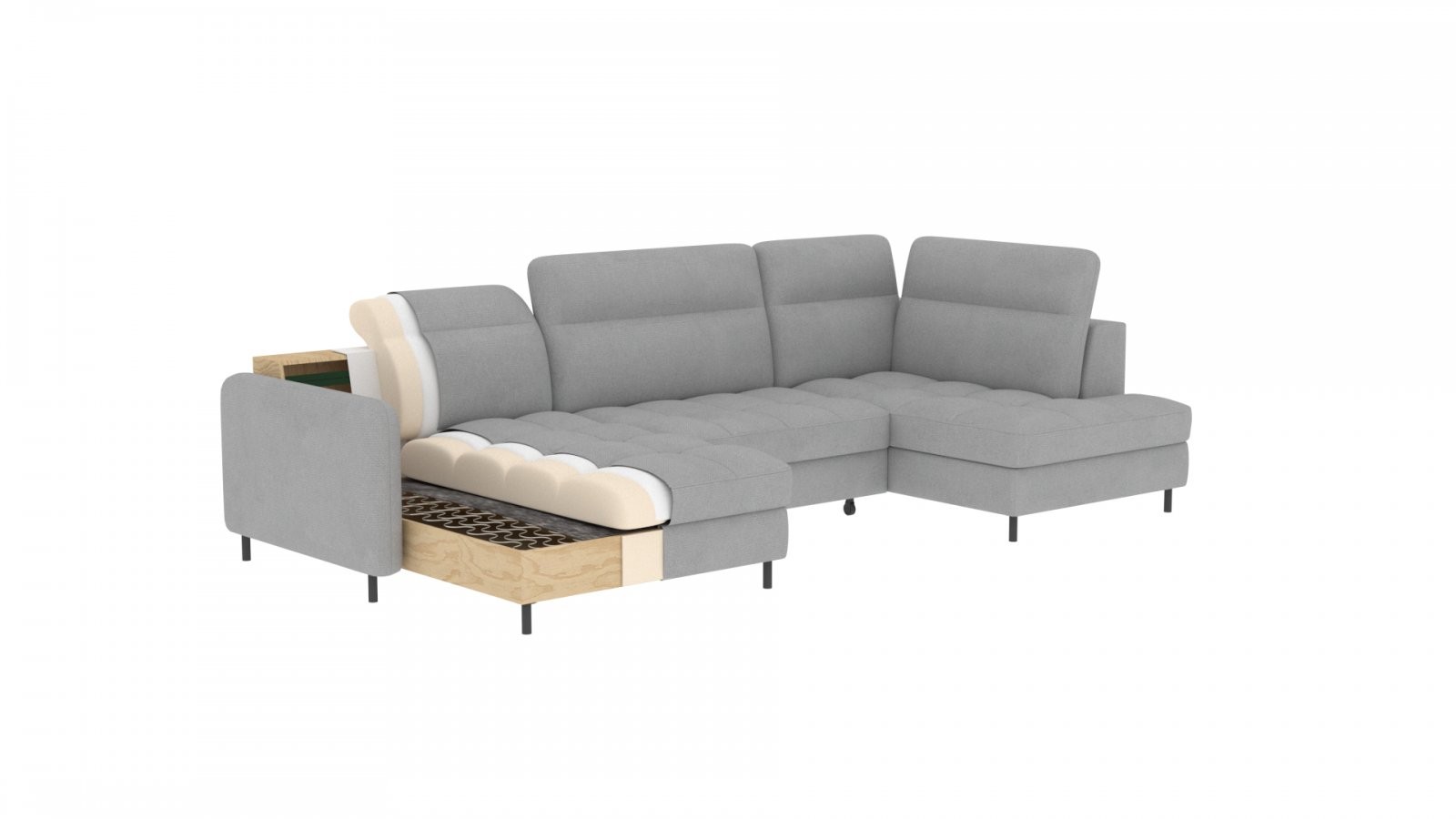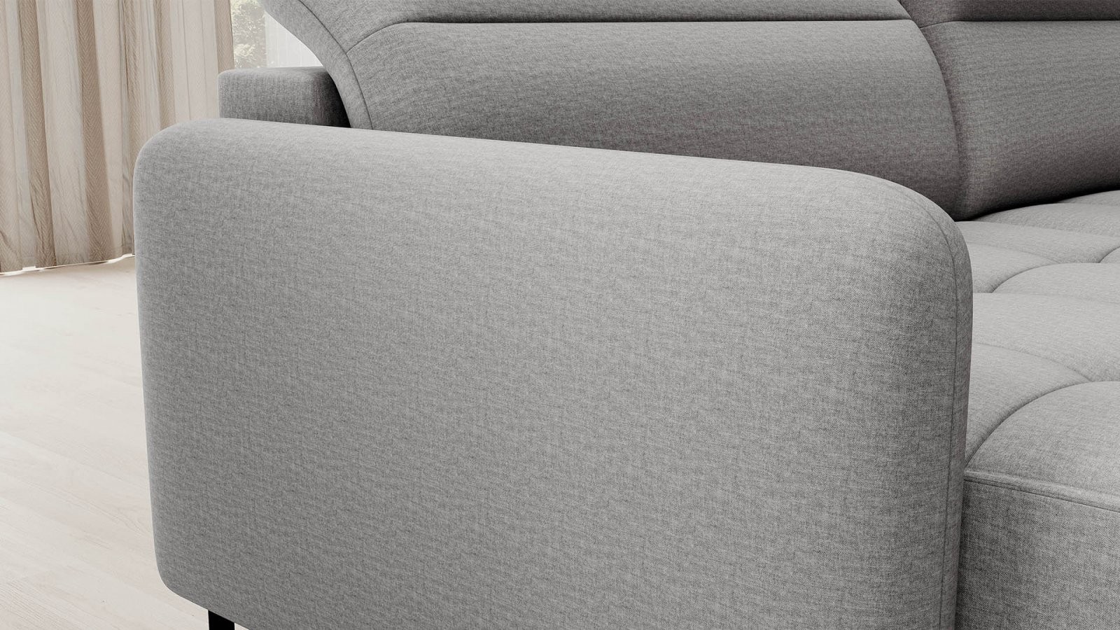 Upotreba tapeciranih traka i pjene T2130 u naslonu kutne garniture Berrto jamči njezinu trajnost i otpornost na deformacije. Ne morate se brinuti zbog nabora koji narušavaju estetiku – ova će garnitura zadržati svoj izvorni izgled dugi niz godina. Osim toga, brzo i jednostavno se pretvara u udoban krevet pomoću mehanizma Dolphin, osiguravajući miran san vama i vašim gostima. Ispod površine se također skriva prostrani sanduk za posteljinu, koji nudi dovoljno prostora za sav potreban tekstil.