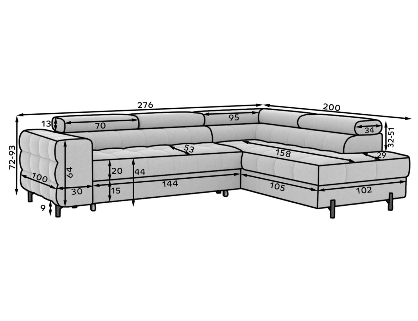 Kutna garnitura Ferucce, dimenzija 276x200x72-93 cm, elegantan je i funkcionalan komad namještaja koji se savršeno uklapa u moderne interijere. Ovaj L-oblik nudi mnogo prostora za opuštanje i udoban kutak za cijelu obitelj. Njegov promišljen dizajn spaja estetiku i praktičnost, osiguravajući da ova garnitura postane središnji i privlačan element vaše dnevne sobe.