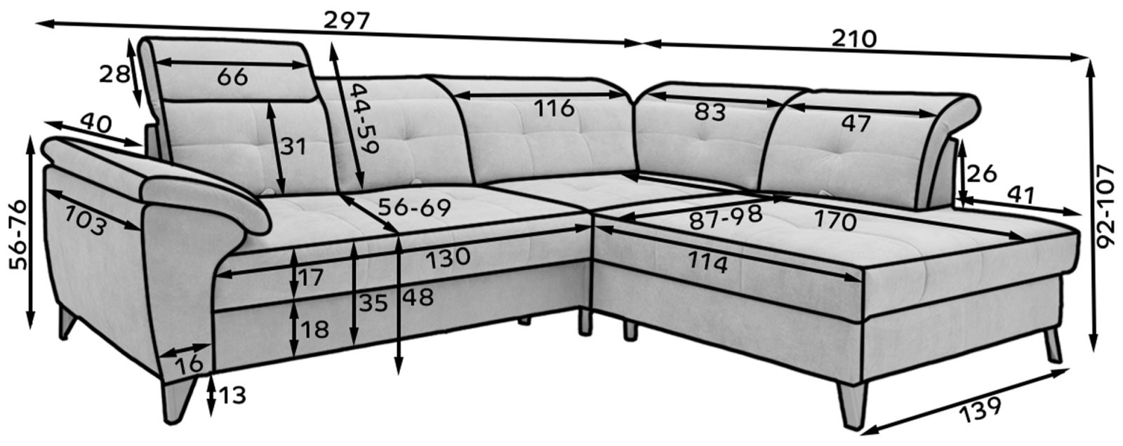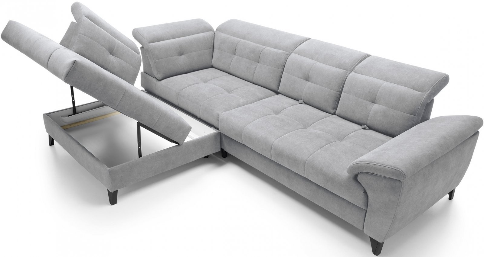 Osim toga, kutna garnitura Inferne opremljena je prostranim prostorom za pohranu posteljine, diskretno skrivenim unutar. Ovo izvrsno rješenje pruža praktično mjesto za spremanje stvari. Crne metalne noge dodaju kutnoj garnituri moderan karakter i naglašavaju eleganciju ovog komada namještaja. Precizna izrada i harmonična kombinacija luksuza, udobnosti i funkcionalnosti stvaraju u vašem dnevnom boravku savršeno mjesto ne samo za opuštanje, već i za druženje s obitelji i prijateljima.