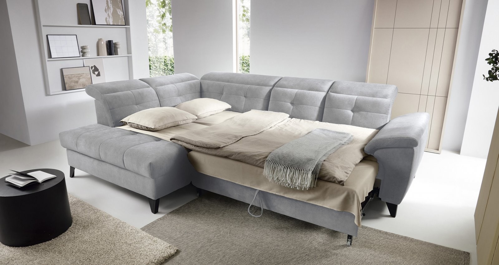 Zahvaljujući upotrebi elastičnih traka za presvlake i T2130 pjene u naslonu za leđa, kutna garnitura Inferne je izuzetno izdržljiva i otporna na deformacije. Zadržat će svoj izvorni izgled dugi niz godina, čime se eliminiraju problemi s naboranjem i gubitkom oblika. Jednostavan mehanizam tipa Dolphin omogućuje brzu transformaciju kutne garniture u udoban krevet, idealan za vas i vaše goste.