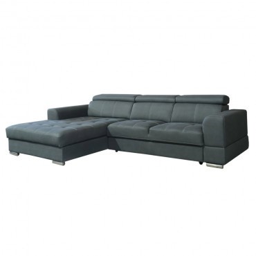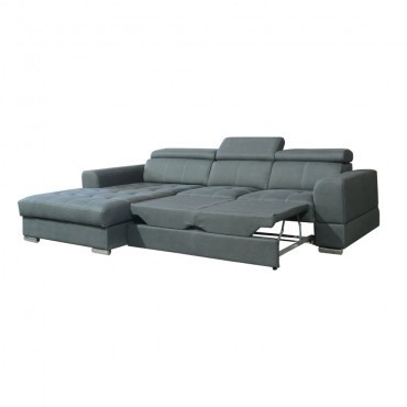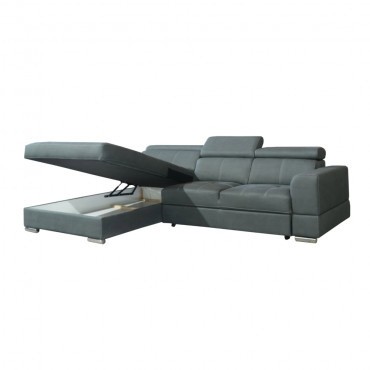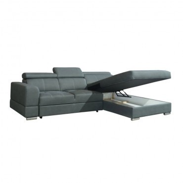 Moderna garnitura u obliku slova L savršena je za vaš dnevni boravak, jer će uljepšati i oživjeti vaš dom. Prostor za sjedenje ima funkciju kreveta na izvlačenje, koji vam nudi mjesto gdje povremeno možete spavati i odmoriti se. Dodatna prednost garniture je prostor ispod sjedala, u kom imate puno prostora za odlaganje stvari gdje možete pospremiti deke, jastuke i ostale stvari koje želite imati pri ruci. Sjedala su punjena pjenom. Garnitura ima i tri podesiva jastuka koji ju čine pogodnom za svakoga. Podržavaju ju metalne noge visine 6 cm. Dostupna je u desnom i lijevom rasporedu.