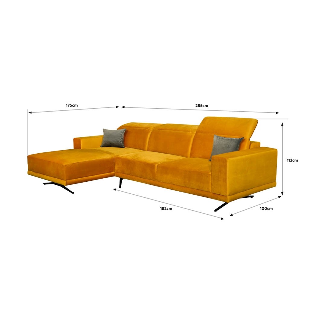 Kutna garnitura PONTI modernog je izgleda i iznimno upečatljive žute boje koja će oživjeti vaš dnevni boravak. Sjedala su iznimno udobna jer su ispunjena pjenom i valovitim oprugama. Cijela garnitura je tapacirana u tkaninu i uključuje funkciju podesivih naslona za glavu. Maksimalno opterećenje svakog sjedala je 100 kg. Garnitura stoji na crnim nožicama.