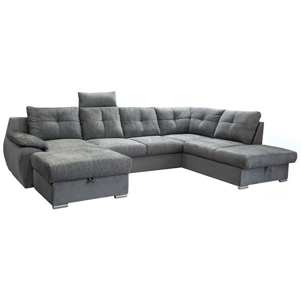 Sjedeća garnitura VALENCIA XXL je moderna sjedeća garnitura, koja je napravljena iz kvalitetne tkanine. Sjedeća garnitura je dobavljiva u sivoj boji. Garnitura ima oblik slova U. Sjedeća garnitura ima opruge i ležište na razvlačenje i dva sanduka. Uključena su i dva jastuka. Na raspolaganju je u dva kuta, lijevi i desni.