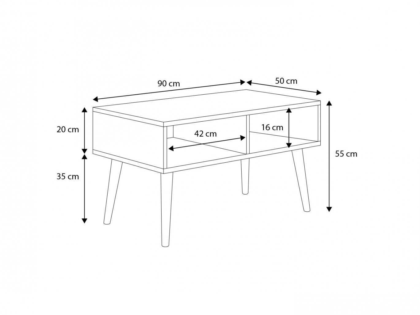 Skandinavski klupski stolić SANA 90x50 savršen je izbor za one koji traže elegantan i funkcionalan komad namještaja za suvremeni dnevni boravak ili manji prostor. Svojim minimalističkim dizajnom i dodatnom policom nudi praktičnost i estetiku u jednom.