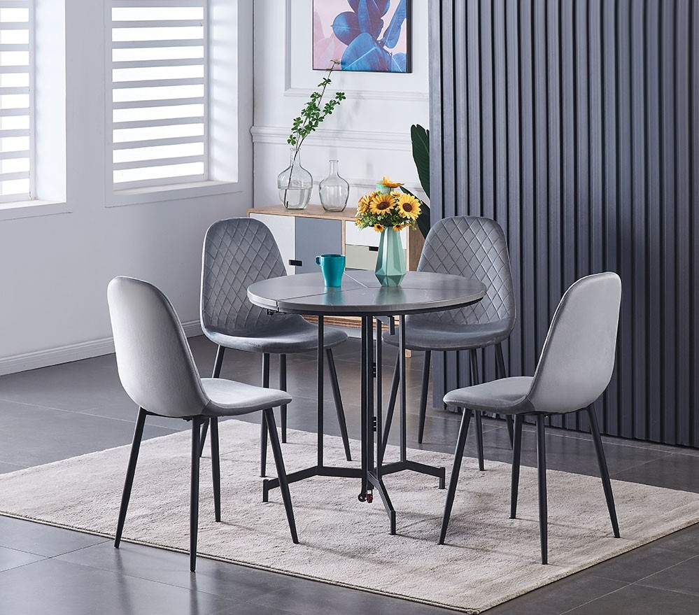 Sklopivi blagovaonski stol IZA 100 okruglog oblika. Ovaj stol je idealna kupnja za osobe koje nemaju puno prostora, te im stol zauzima previše životnog prostora. Stol IZA 100, osim minimalističkog, ali modernog izgleda, nudi i funkciju sklapanja, što znači da ćete moći složiti stol nakon jela, odnijeti ga u kut i vaš će prostor ponovno biti veći. Stol je izrađen od MDF materijala u tamnoj boji. Baza stola je izrađena od metala i praškasto premazana crnom bojom. Maksimalna nosivost je 50 kg.