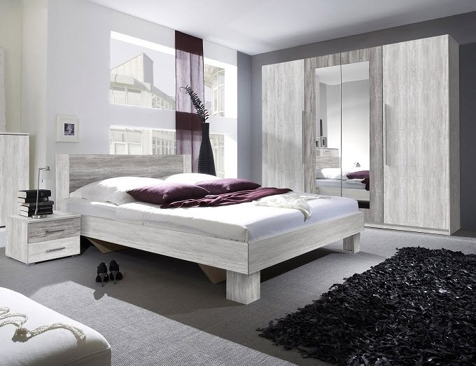 Spavaća soba ANNA, veliki komplet (svijetlo siva bor-tamno siva bor) dostupna je u kombinaciji sive boje. Komplet se sastoji od 4 komponenta (krevet, garderobni ormar, 2x noćni ormarić). Elementi su izrađeni od visoko kvalitetnog materijala koji omogućava dug vijek trajanja.