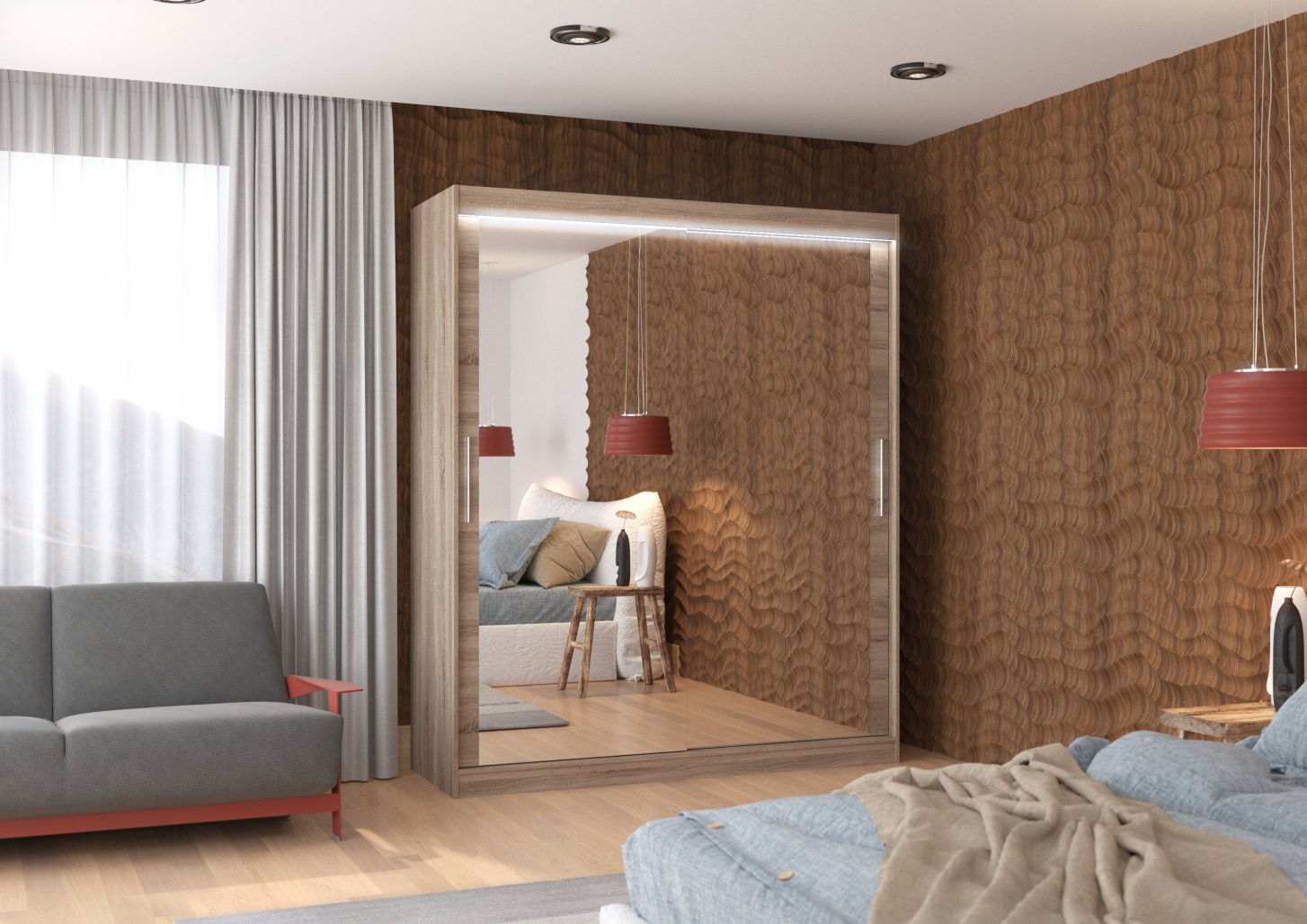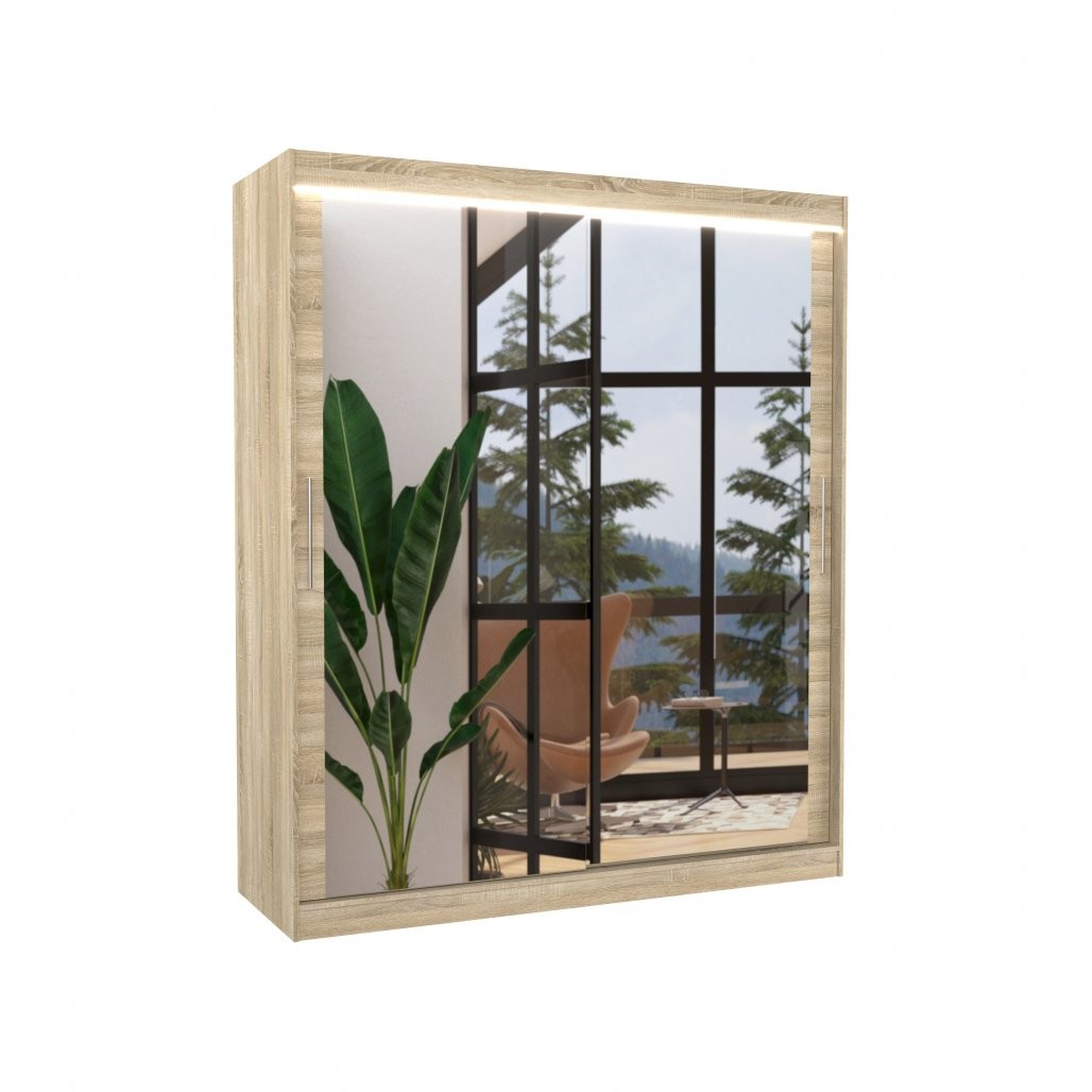 Ormar ima ogledala koja vizualno povećavaju prostor i LED rasvjetu koja stvara ugodnu i suvremenu atmosferu. Klizna vrata čine ga idealnim izborom za manje prostorije jer ne zahtijevaju dodatni prostor za otvaranje.