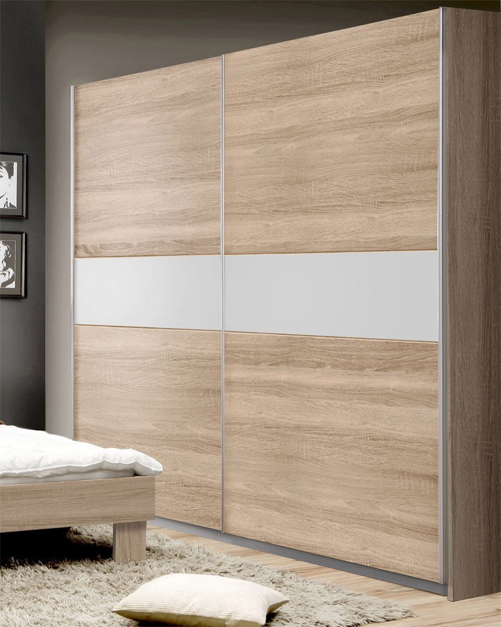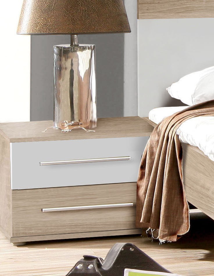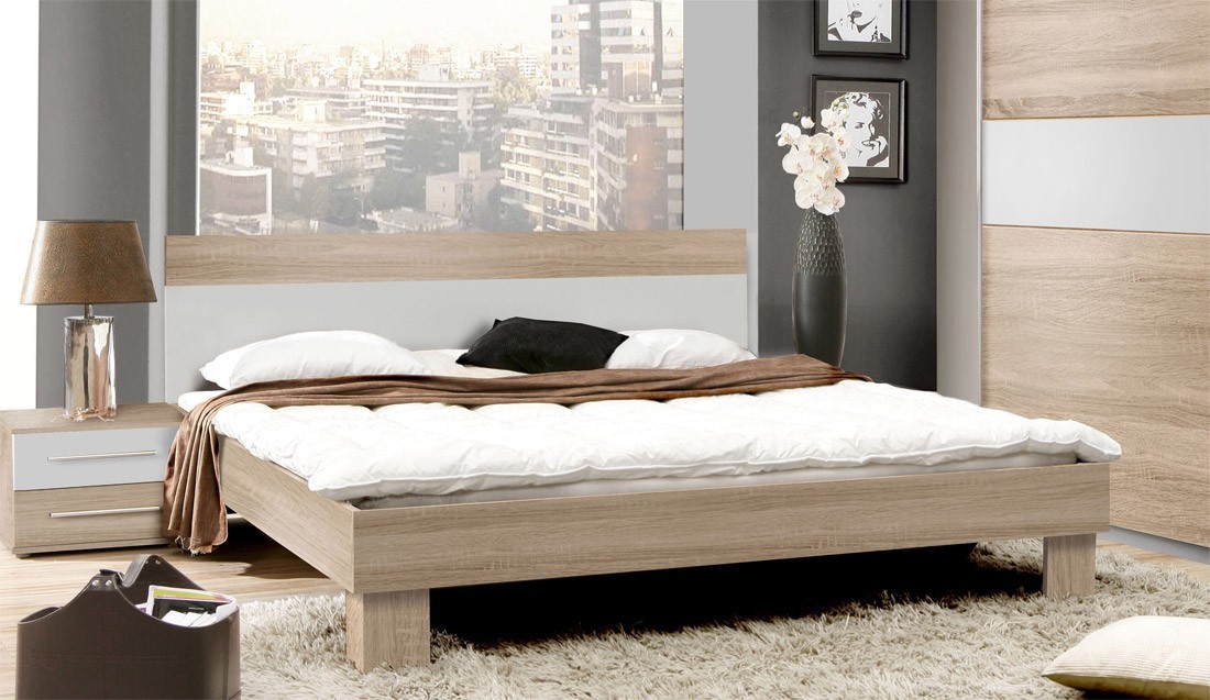 Spavaća soba GOLD STAR je moderna spavaća soba u kombinaciji boja sonoma hrasta i bijele mat boje.
